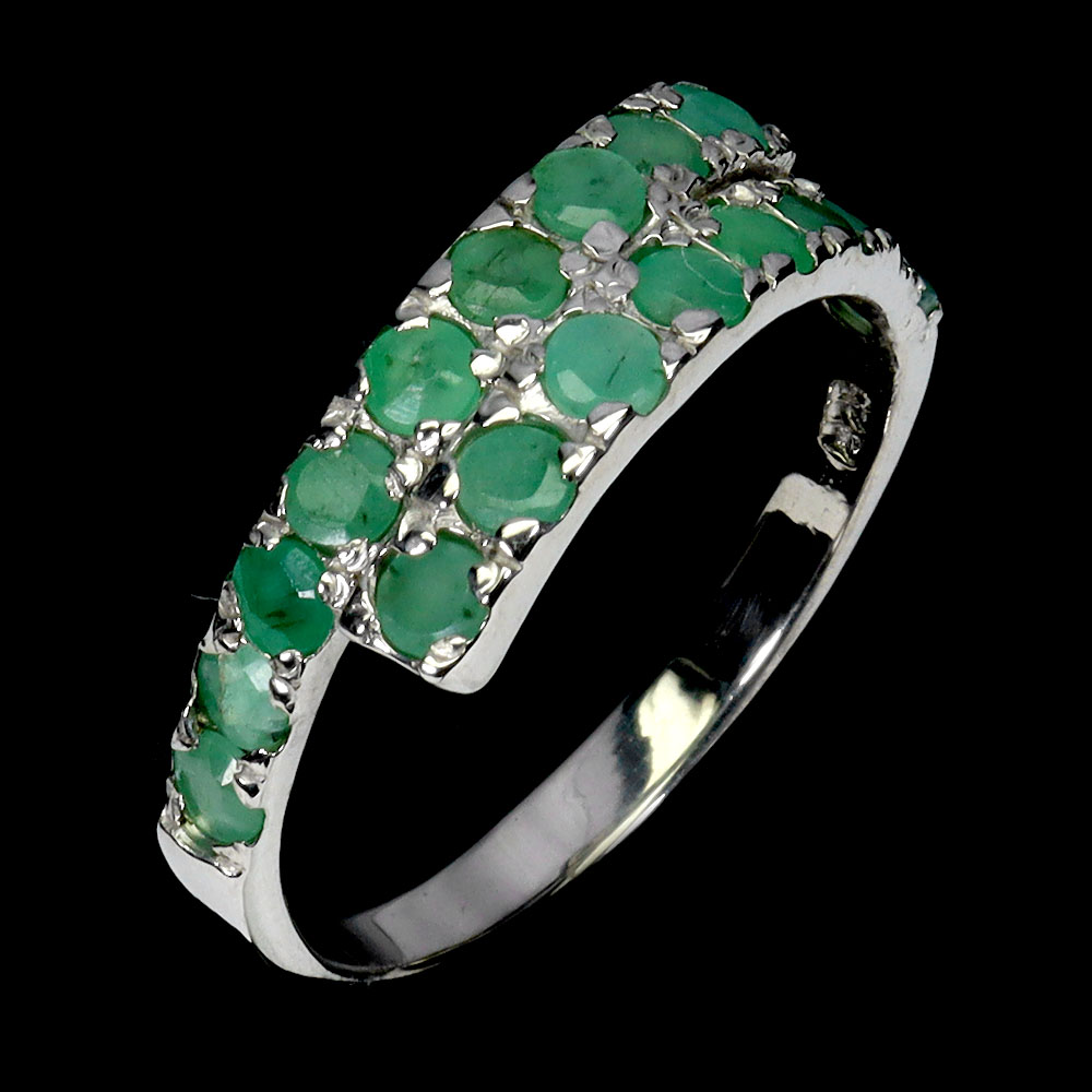 925 Sterling Silver Ring Round Emerald 2.5mm Natural Gemstone Jewelry Size 8