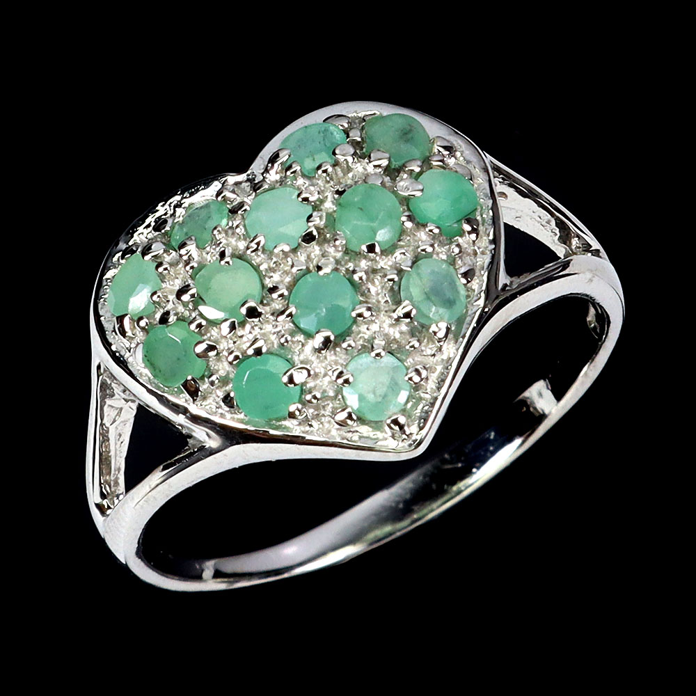 925 Sterlingsilber Ring Rund Smaragd 2mm Natürlicher Edelstein Schmuck Größe 8
