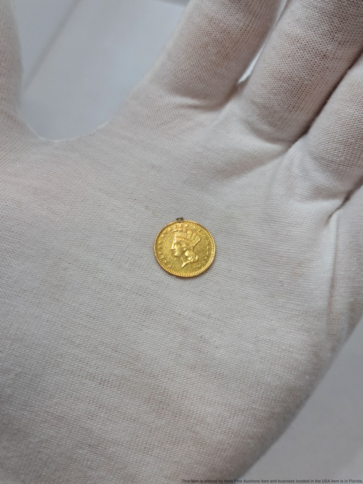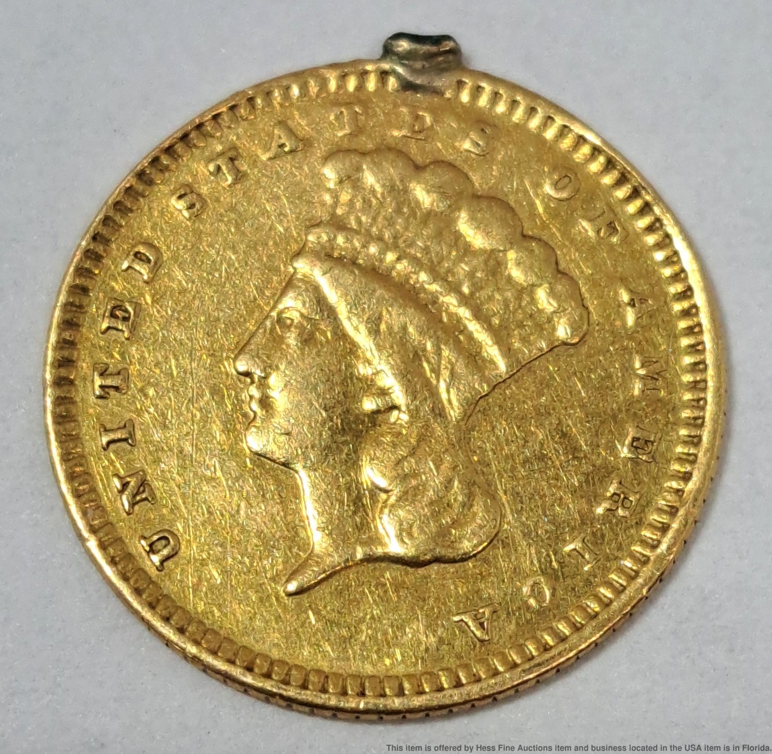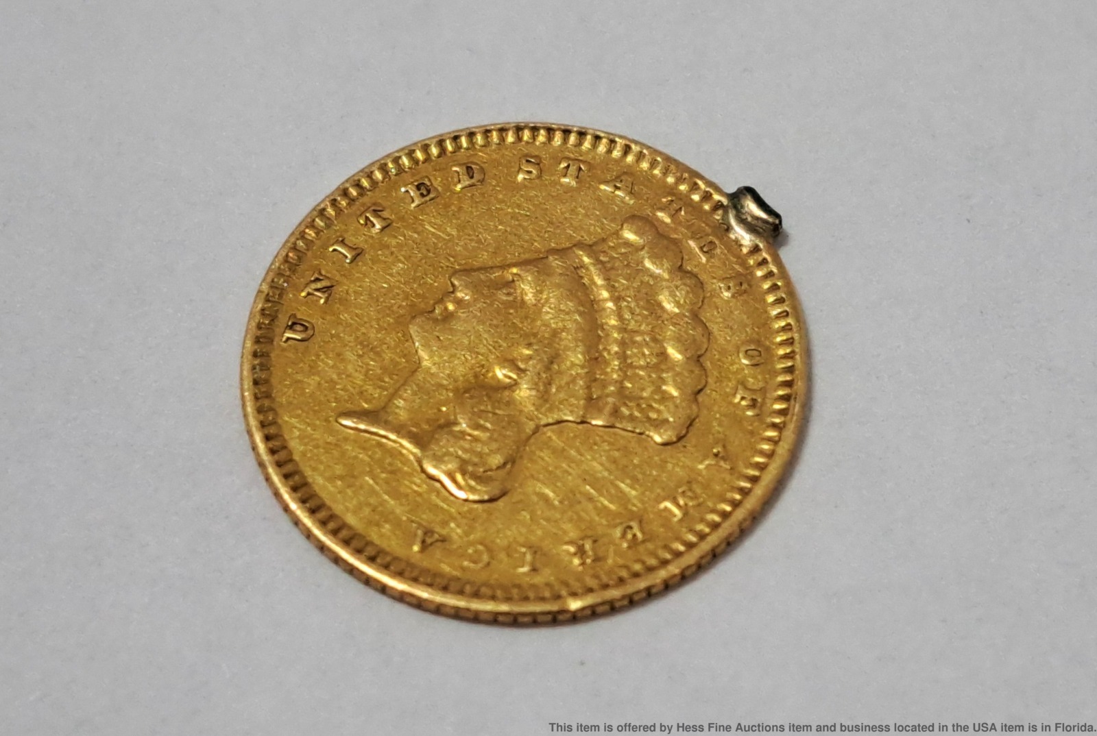 - Described & Photographed By: Mike NFED 66911 Title: Indian Head Gold $1 American Gold Coin Love Token Description: Take home this amazing coin today! Happy bidding! It appears as if this was once a pendant and the bale has been taken off. Here are the specifications Number of Items: 1 Metal: 90% Gold 10% Copper Country: United States of America Measurements: 15 mm Weight: 1.41 grams Estimated size of package: 7.5in x 5.5in x 3.5in Estimated total weight of package: 8oz Please Note: If the winning bidder would like to arrange to pick up their item at our store then please notify us by email & we will make the appropriate shipping adjustments.
