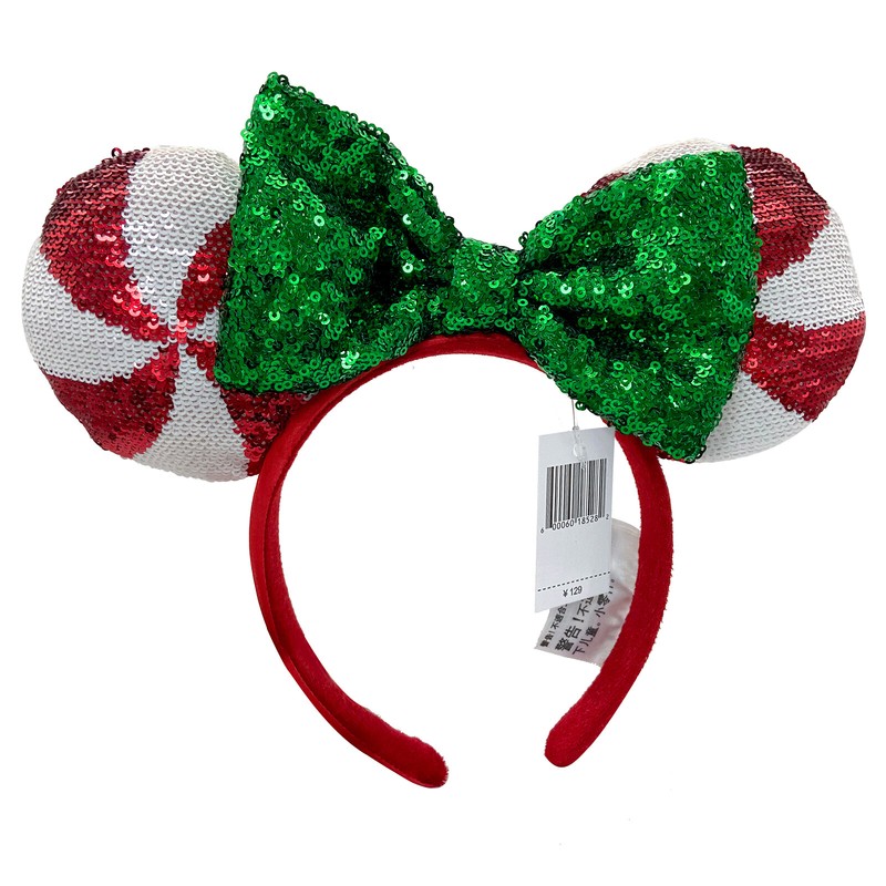 Disney- Parks Christmas Minnie Mouse Ear Lollipop Candy Cane Sequin Headband US