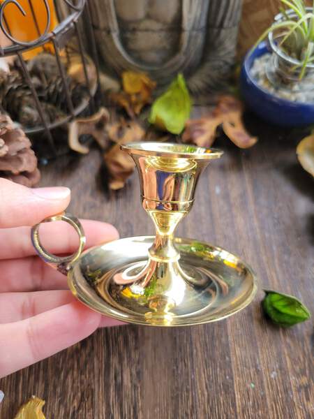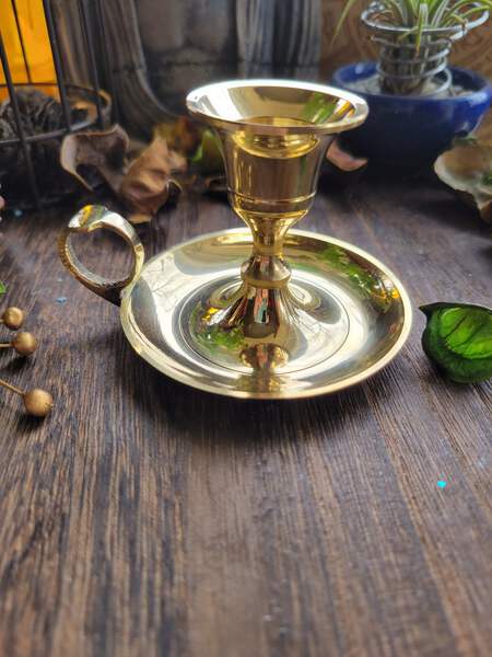 Antique-style brass taper candle holder. The convenient handle makes carrying a taper much easier, as you`re able to keep a hand free. Also, the holder itself has an air of class about it. A splendid addition to any home. Supports any handle with a 7/8" diameter.