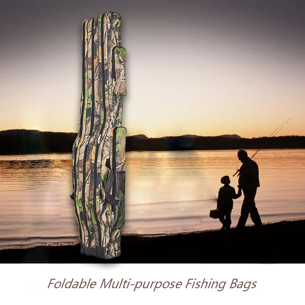 Fishing Rod Storage Bag 150cm Foldable Fishing Bag 3 Compartments Outdoor Travel