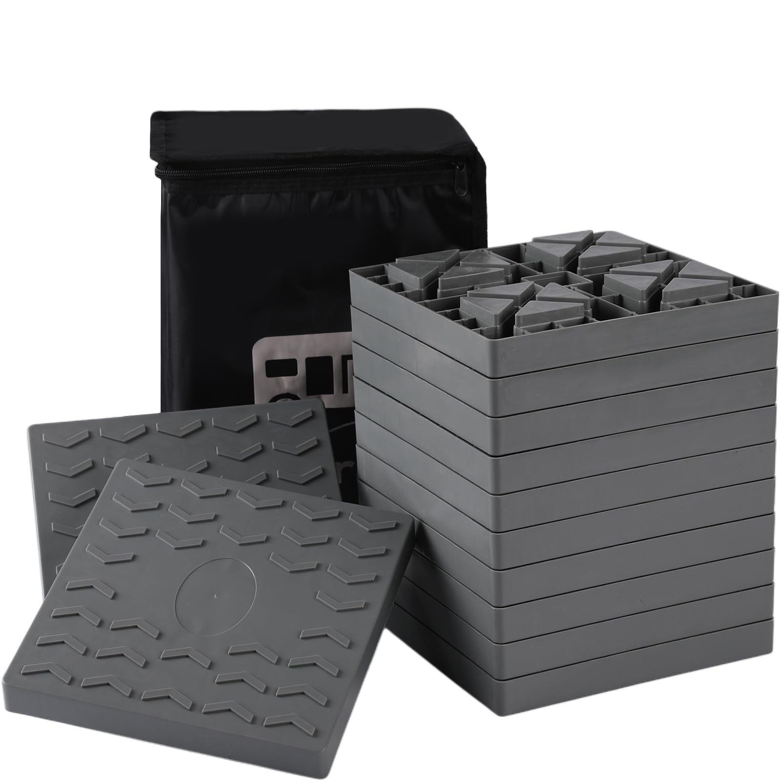 Keltrion 12 Packs Camper/RV Leveling Blocks Suitable for 4 Wheels Interlocking and Anti-Slip Design with Carrying Bag Heavy-Duty for Camper Travel Trailer Grey