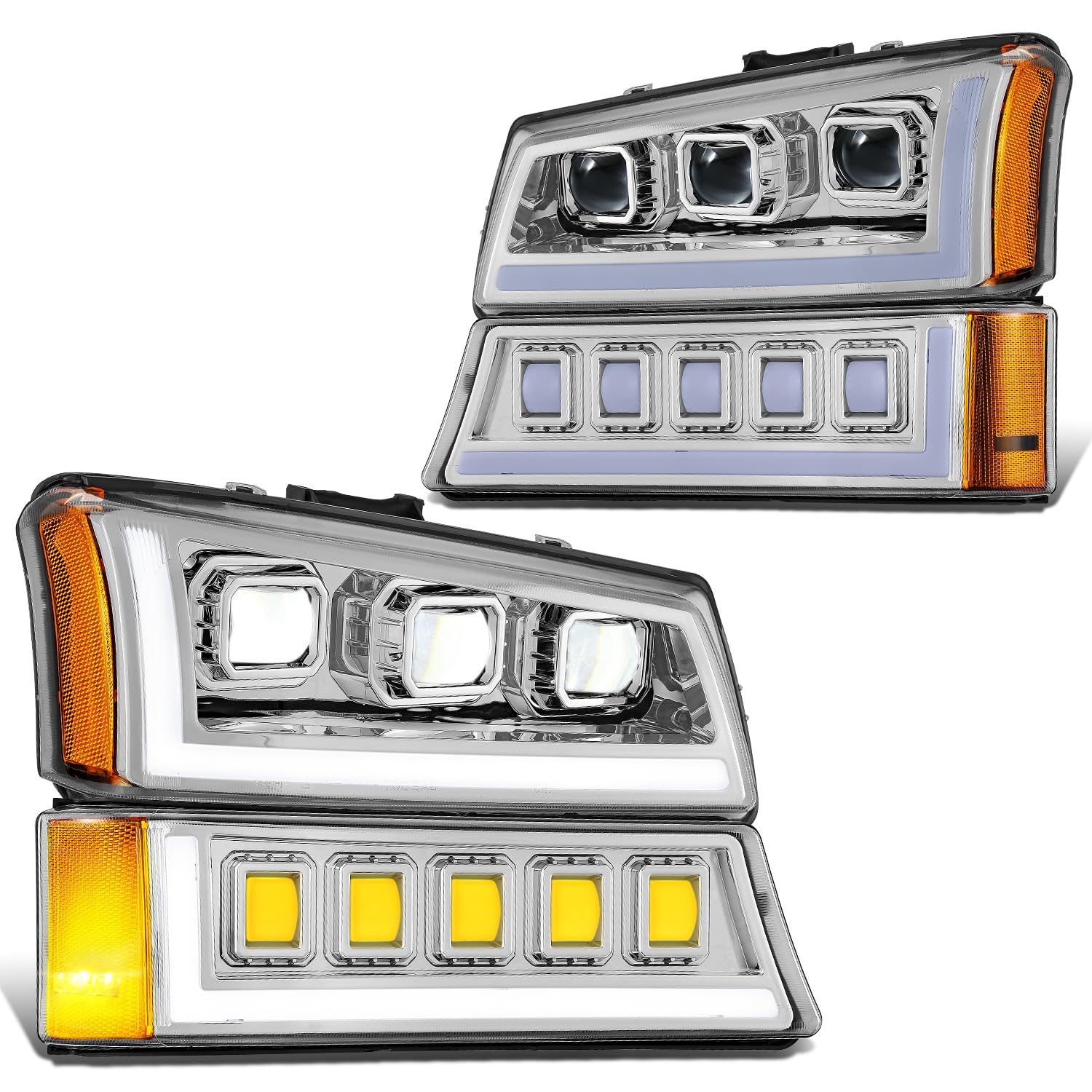 DNA MOTORING Pair Full LED Projector Sequential Headlights Compatible with 03-06 Chevy Silverado 1500 2500 3500 1500HD 2500HD, Start-Up Sequential DRL, Chrome/Amber, HL-HP8-CSIL03-4P-CH-AM