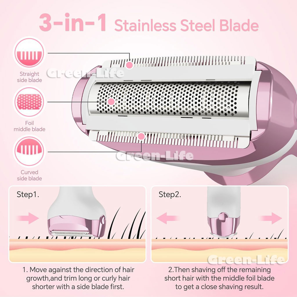 • Four-in-One Functionality :This device combines the functionality of a hair remover, razor, and body shaver.