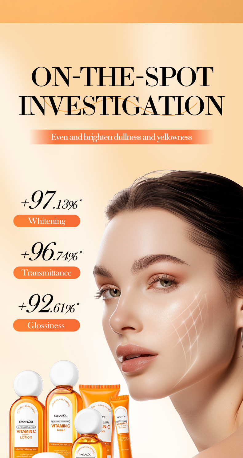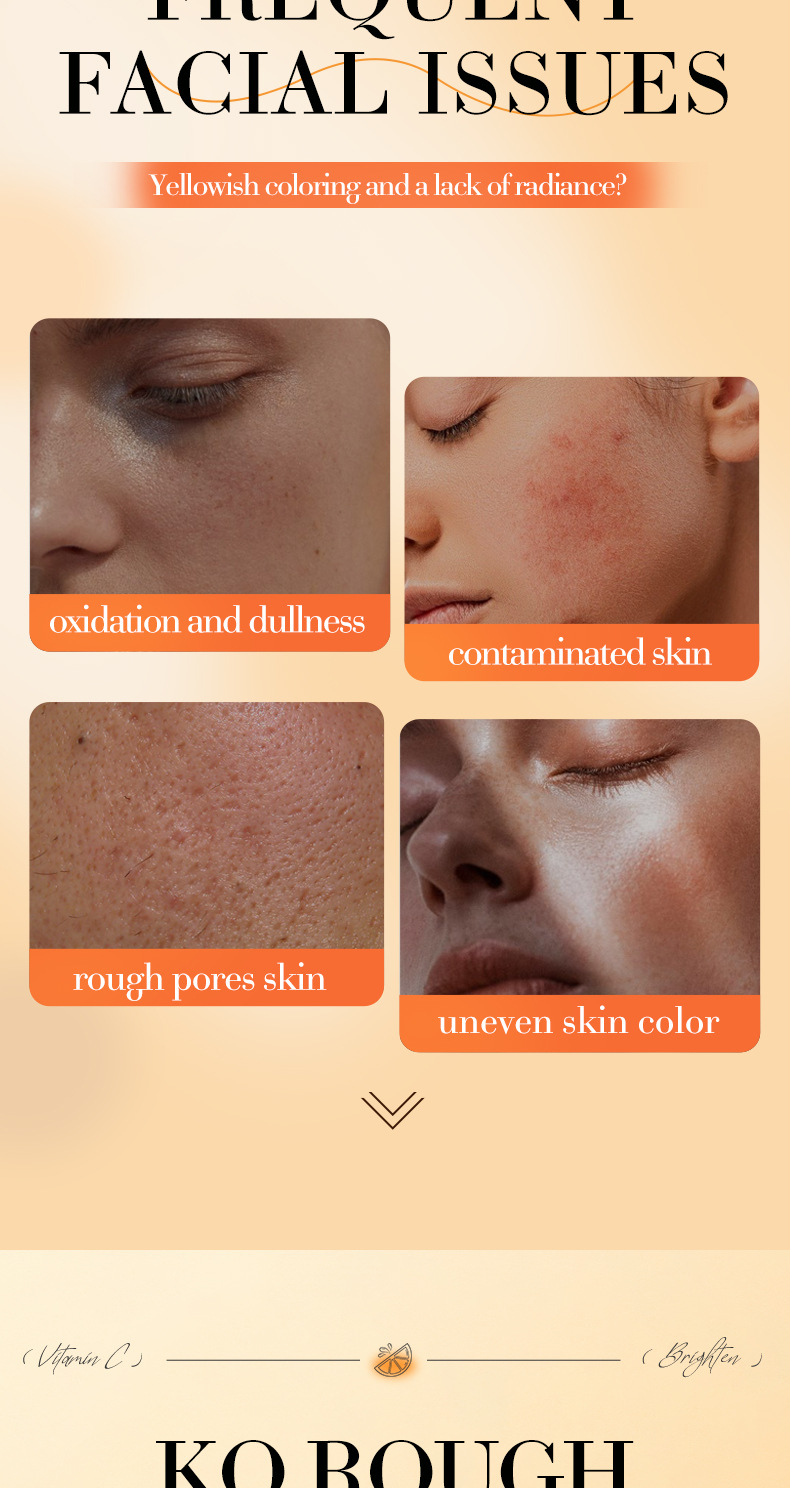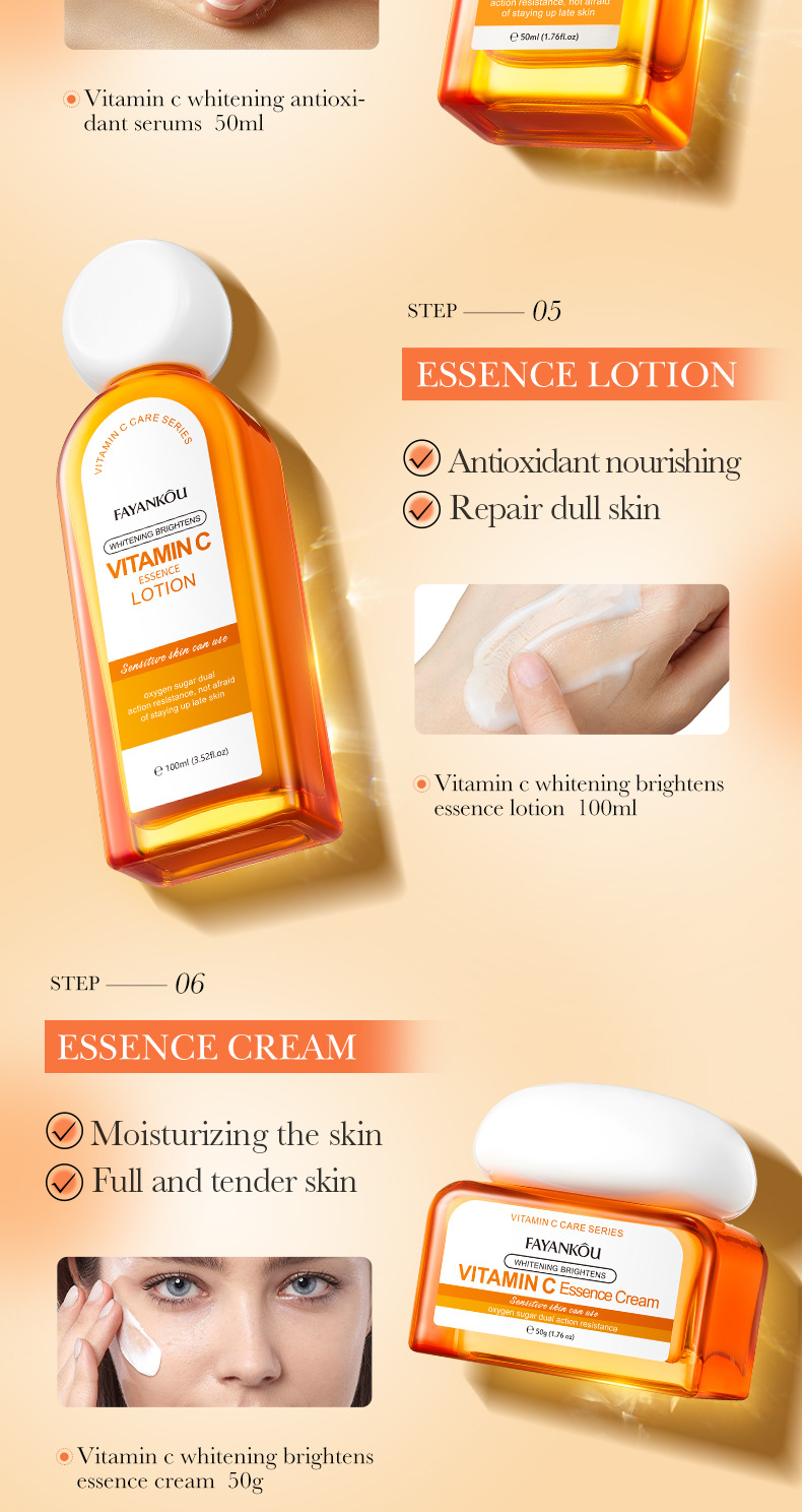 EFFICACY TouchingI the skin, it isrefreshingand moisturizing.containingessence such as vitamin C(ascorbic acid)whitening,antioxidantandnourishing,repairing roughand dull skin, brightening theskin tone, making the skinfair, translucent, tender, andsmooth.