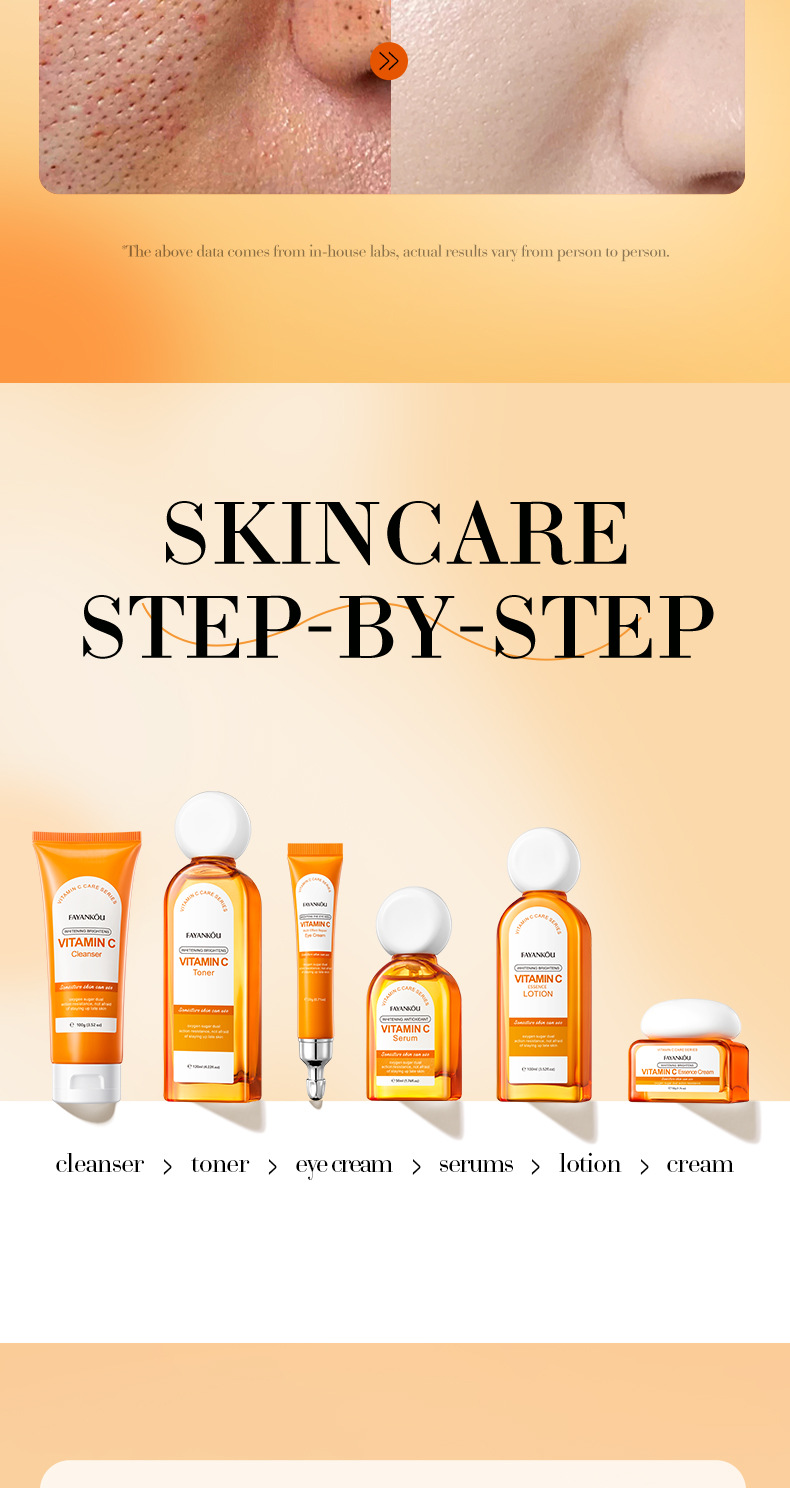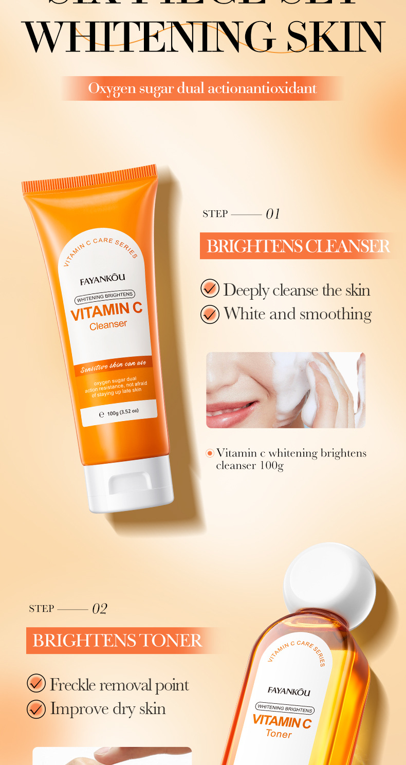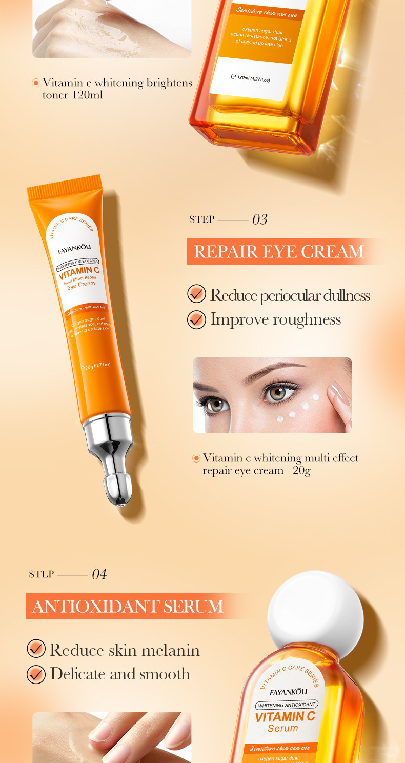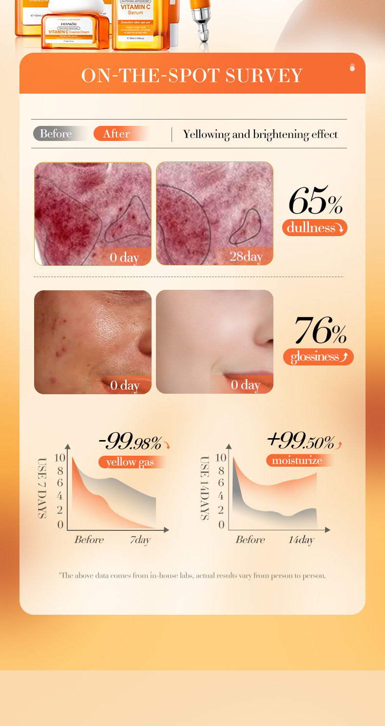 EFFICACY TouchingI the skin, it isrefreshingand moisturizing.containingessence such as vitamin C(ascorbic acid)whitening,antioxidantandnourishing,repairing roughand dull skin, brightening theskin tone, making the skinfair, translucent, tender, andsmooth.