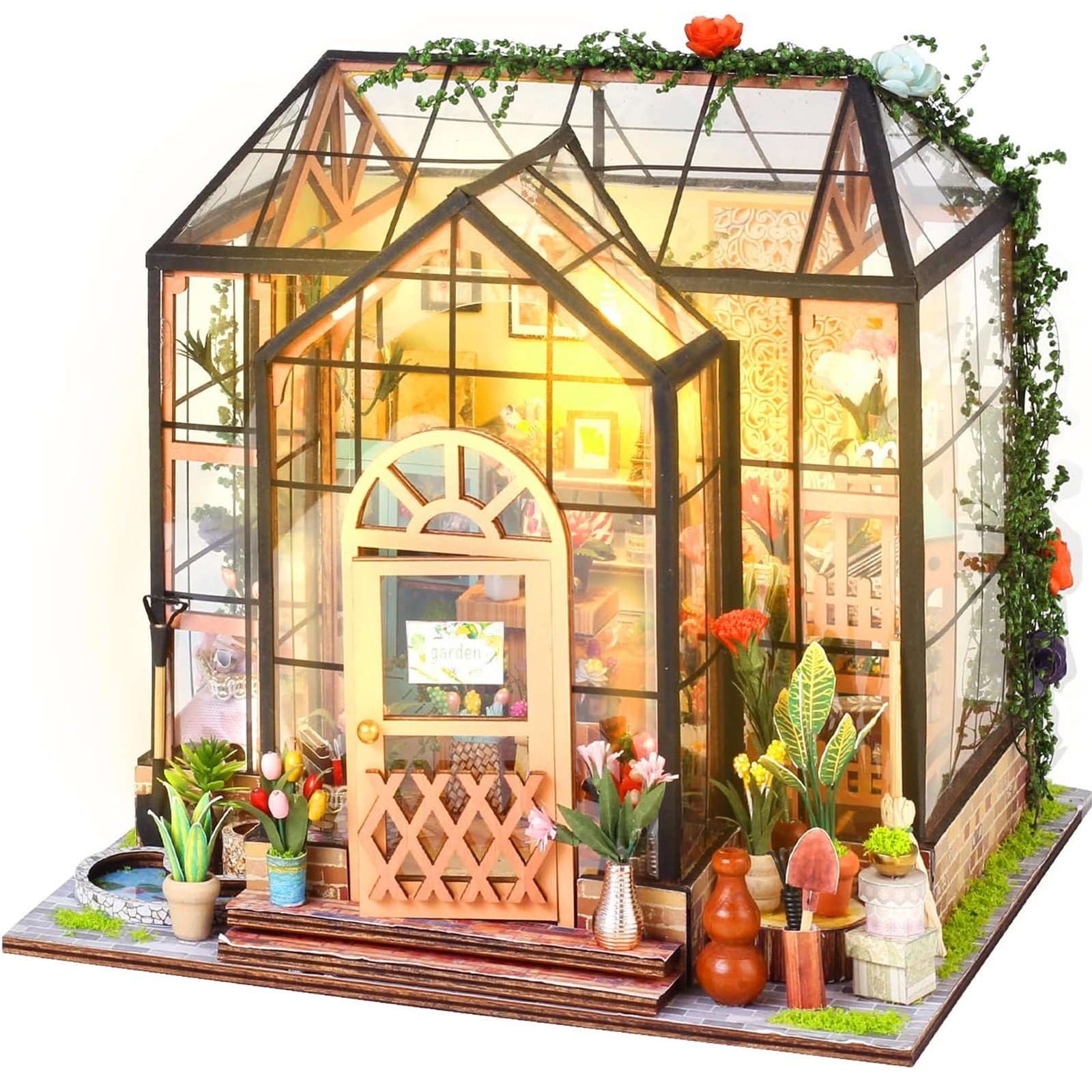- Interessantes DIY Baukasten-Set: Um dieses Miniatur-Gewächshaus zu vervollständigen, benötigen Sie Kleben, Zusammenbauen, Formen und Platzieren. Es enthält alle Möbel und Accessoires Pflanzen, Blumen, Regale, Schreibtische, Türen, Pflanzen, aber es erfordert DIY-Arbeit und ist fast so echt, sehr niedlich und schön.