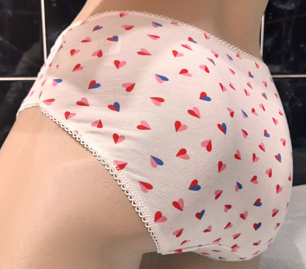 Girls 13-14yrs pretty brief knickers. Pants are a Cream Multicoloured Heart