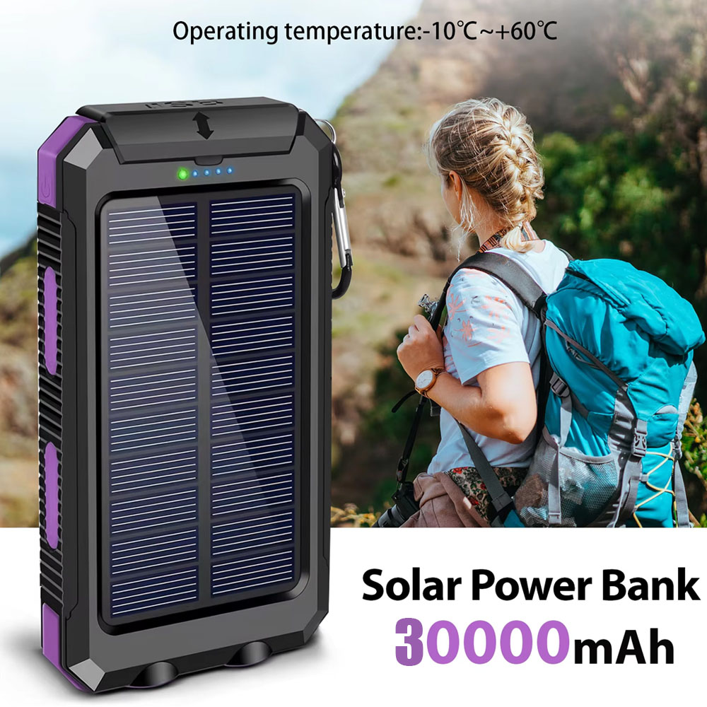 Solar Power Bank 30000mAh Tragbar Externer Batterie Ladegerät Outdoor Camping