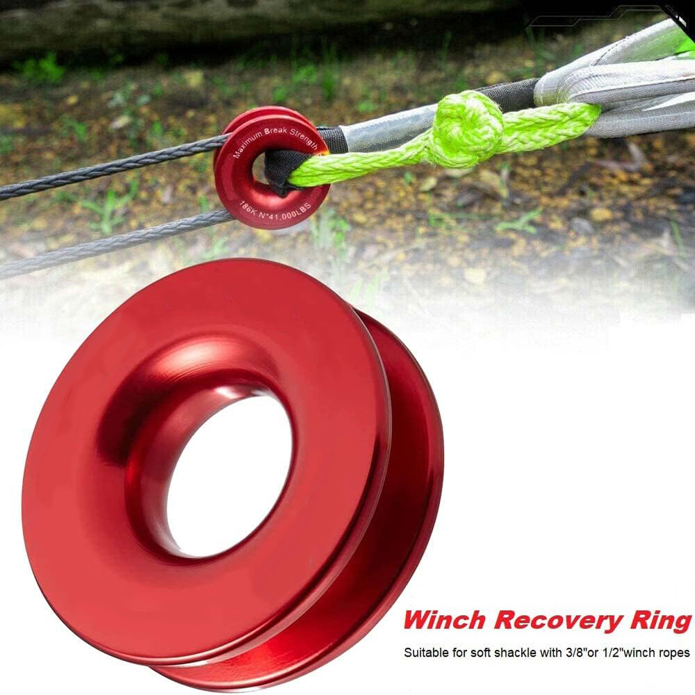 Winch Recover Ring Snatch Block Pulley Towing Ring for ATV UTV SUV Truck Red
