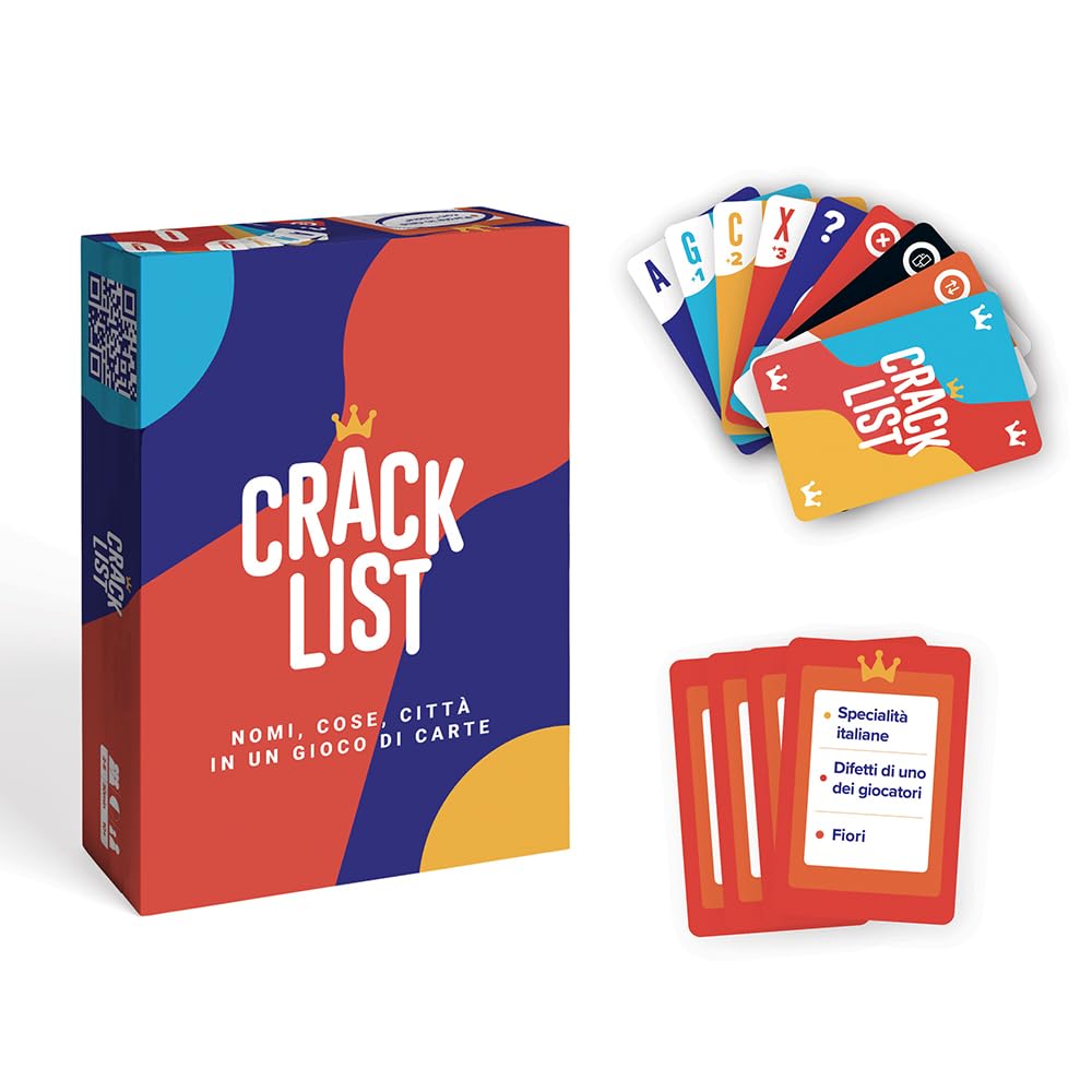 💙 Crack List è il gioco da tavolo e di carte che trasforma il classico “Nomi, Cose, Città” in una sfida veloce, divertente e piena di colpi di scena! Ogni giocatore ha 8 carte-lettera in mano. Una categoria viene scelta, e ognuno deve trovare una parola che inizi con una delle proprie lettere. 👉 Sembra facile? Le carte AZIONE possono bloccare un avversario, cambiare la categoria o ribaltare la partita in un istante. Perfetto come gioco di società per adulti e famiglie, Crack List garantisce risate e sfide intelligenti per serate con amici, vacanze e feste. 🎄 Un’ottima idea regalo di Natale per chi ama i giochi da tavolo divertenti e i party game originali. ✔ Dai 10 anni in su ✔ 2-8 giocatori ✔ 30 minuti a partita ✔ Facile da imparare, impossibile smettere di giocare ✔ Creato in famiglia, da un papà e sua figlia, per unire generazioni