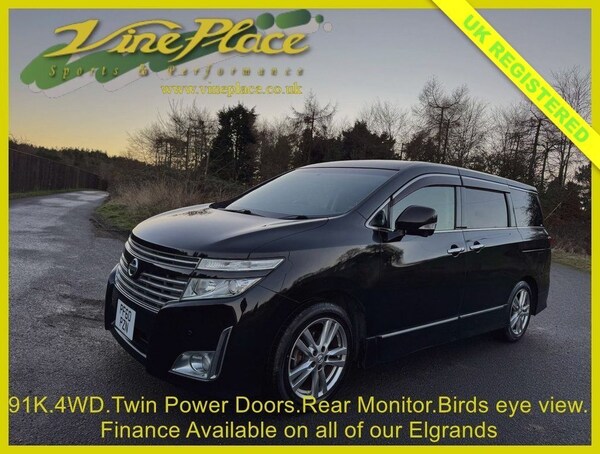 The Nissan Elgrand E52 Highway Star is our top-selling model in the E52 model range. Featuring a sleek dark interior, this vehicle is suitable for most purposes. Available in both 2.5 and 3.5 engines and offering the choice between front-wheel drive (FWD) and four-wheel drive (4WD), and 7 and 8 seats, these cars surpass the E51 in refinement and fuel efficiency, though they do have less interior space. This is a 3.5 4WD and an 8 seat version. It has birds eye view, a 11 inch rear monitor,DVD, twin power slide doors, economy mode and the menu system has been translated to English. + ULEZ Compliant (London). + 90K warranted miles with BIMTA/AA mileage certificate. + Grade 4 vehicle (non-accident history in good order). + All factory recalls carried out. + 8 Seats. + Black half leather seats. + Switchable 4 Wheel Drive. + 11 Inch remote control rear drop down monitor. + DVD. + Birds eye view camera system. + Front parking sensors. + Rear parking sensors. + Twin remote control power doors. + Factory fitted ISOFIX. + Secret luggage compartment. + Keyless entry and starting. +Power and economy mode option. + Traction Control. + Retractable mirrors. + XENON Headlamps for superb night-time vision. + Directional headlamps. (AFS). + 60/40 Split rear seat. + Nissan NATS alarm and immobiliser security system. + Privacy glass. + 2 Remote key fobs. + Fog light incorporated into original rear light unit. + Exposed areas of floor and chassis to be undersealed with Body-shutz. + Includes Bluetooth adapter to allow streaming to car audio. + Nationwide delivery £199. (£299 Devon, Cornwall, and South/West Wales) + Supplied with comprehensive service and MOT (inc. advisories). + MPH speedometer available as an optional extra. + Switchable power/economy upgrade available as an optional extra. + This vehicle can be reserved with a deposit of £250, refundable in the unlikely event that when fully prepared you are not entirely satisfied. Explore our extensive selection of Nissan Elgrand vehicles, with 30 or more units available for sale in the UK or en route! Since 1997, Vine Place has been importing a diverse range of vehicles from Japan. The Nissan Elgrand holds a special place in our lineup for its exceptional blend of practicality, aesthetics, comfort, unwavering reliability, and impressive performance. Not only do we offer the Nissan Elgrands for sale, but as a leading Nissan Elgrand dealer in the UK, we extend our commitment to customer sa.