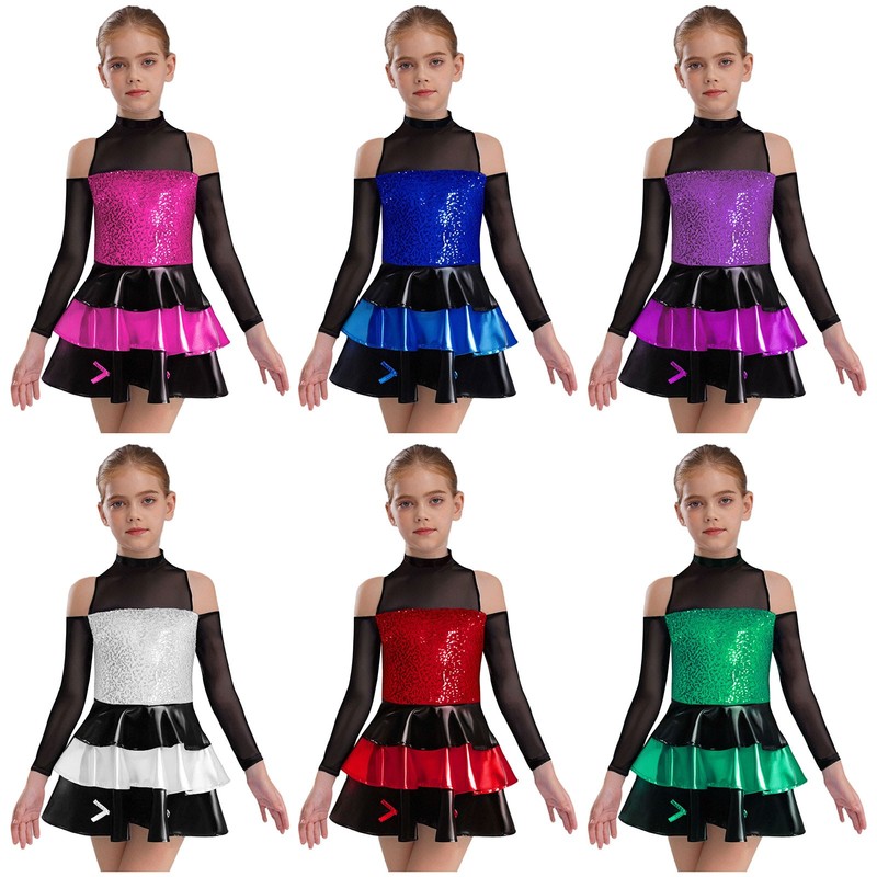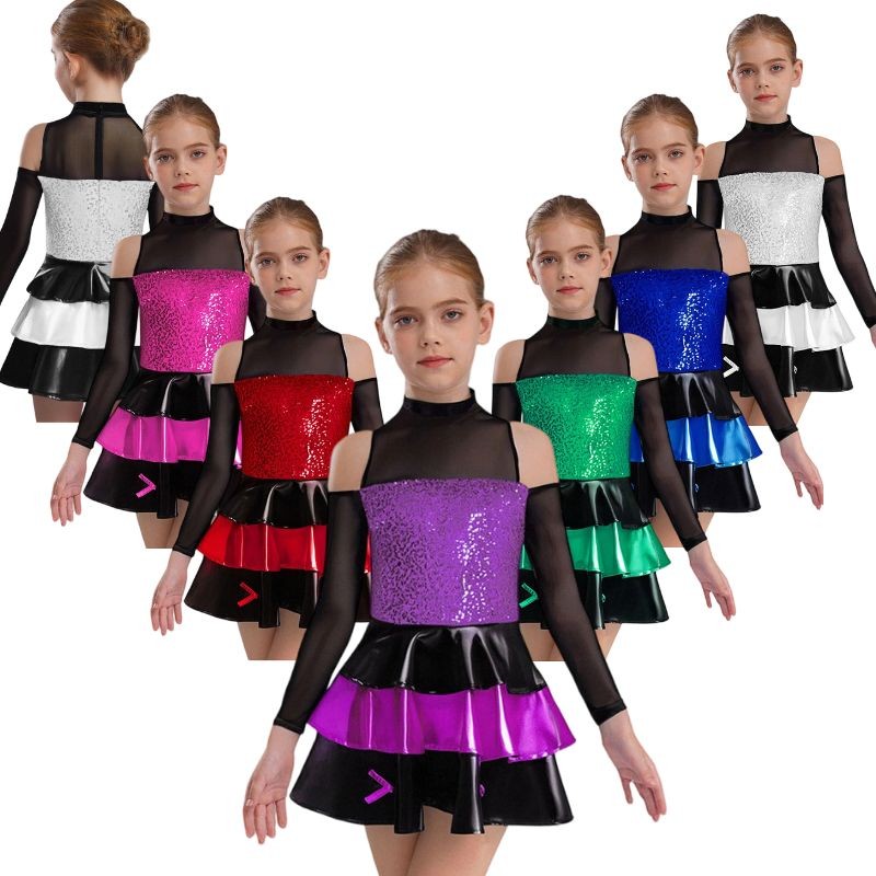 Girl’s dance dress makes your child stand out with color block design and shiny sequins bodice.