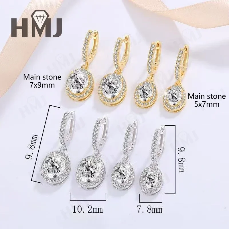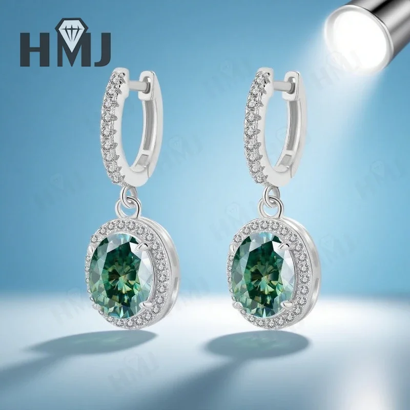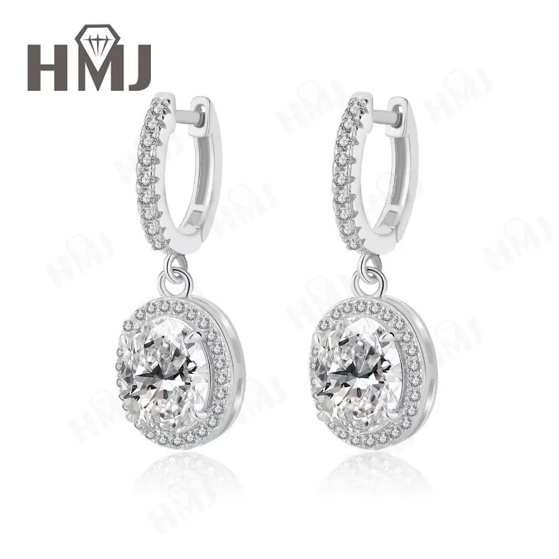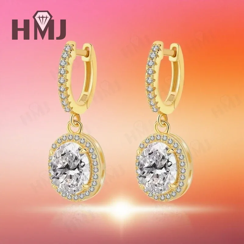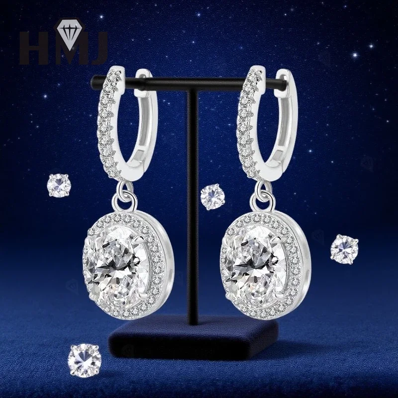 Dangling Hoop Earrings Moissanite Diamond Oval Cut S925 Sterling Silver Fine Jewelry for Women Gifts Pendientes Vintage Charms