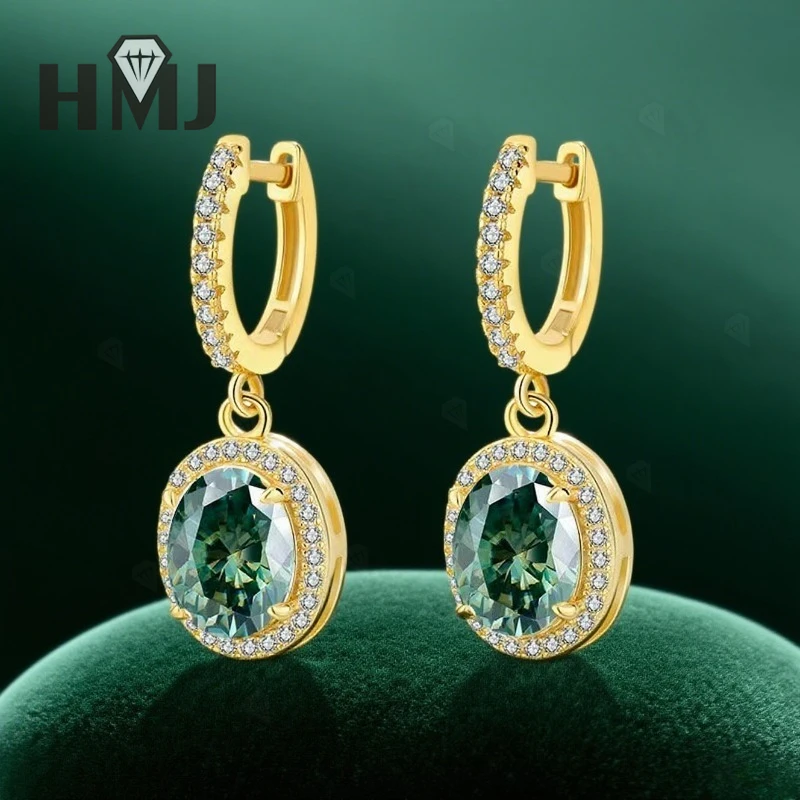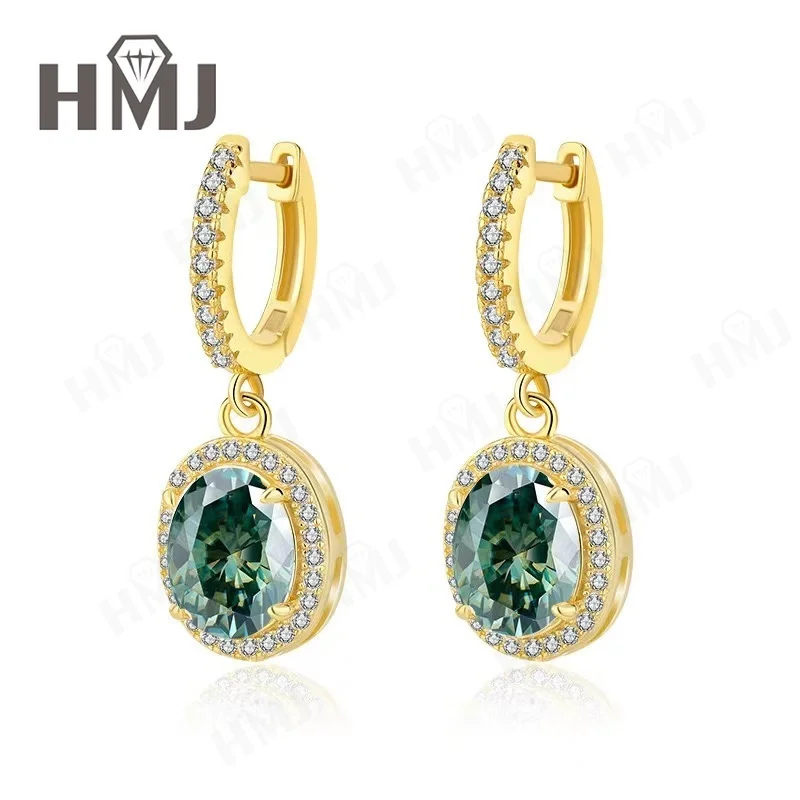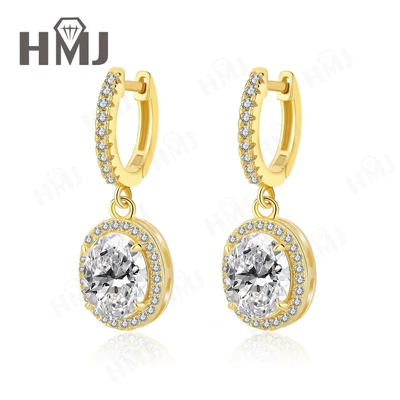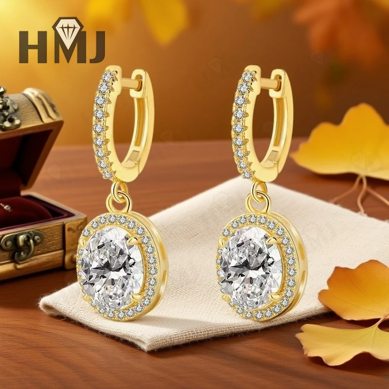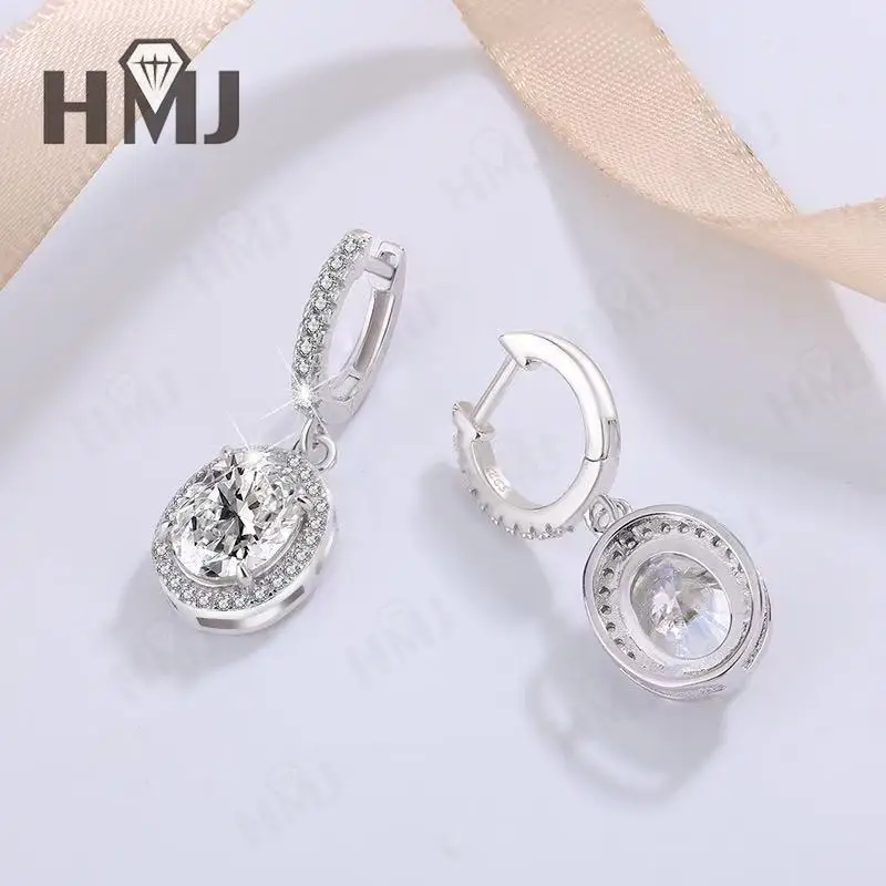Dangling Hoop Earrings Moissanite Diamond Oval Cut S925 Sterling Silver Fine Jewelry for Women Gifts Pendientes Vintage Charms