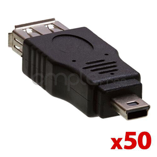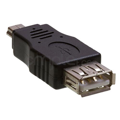 This USB A Female to Mini B 5-Pin Male adapter converts any USB A Male connector to a USB Mini B 5Pin male port.