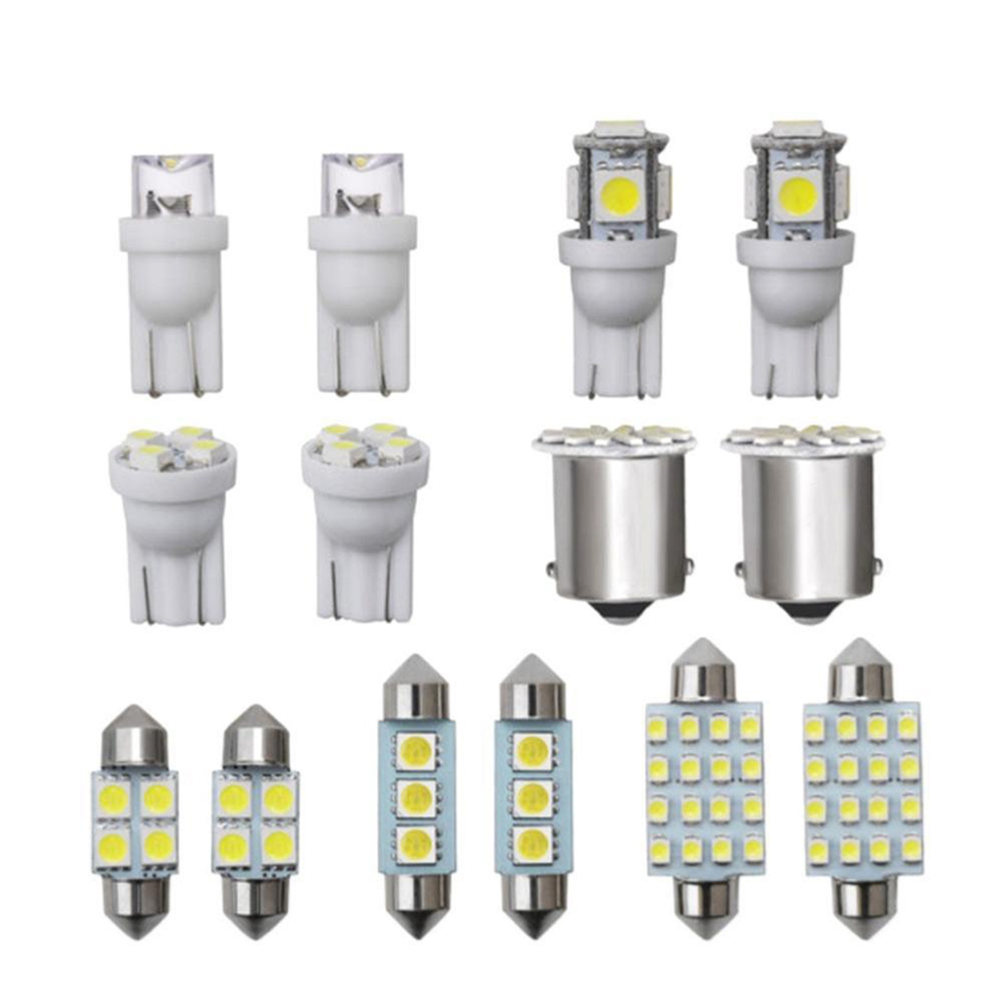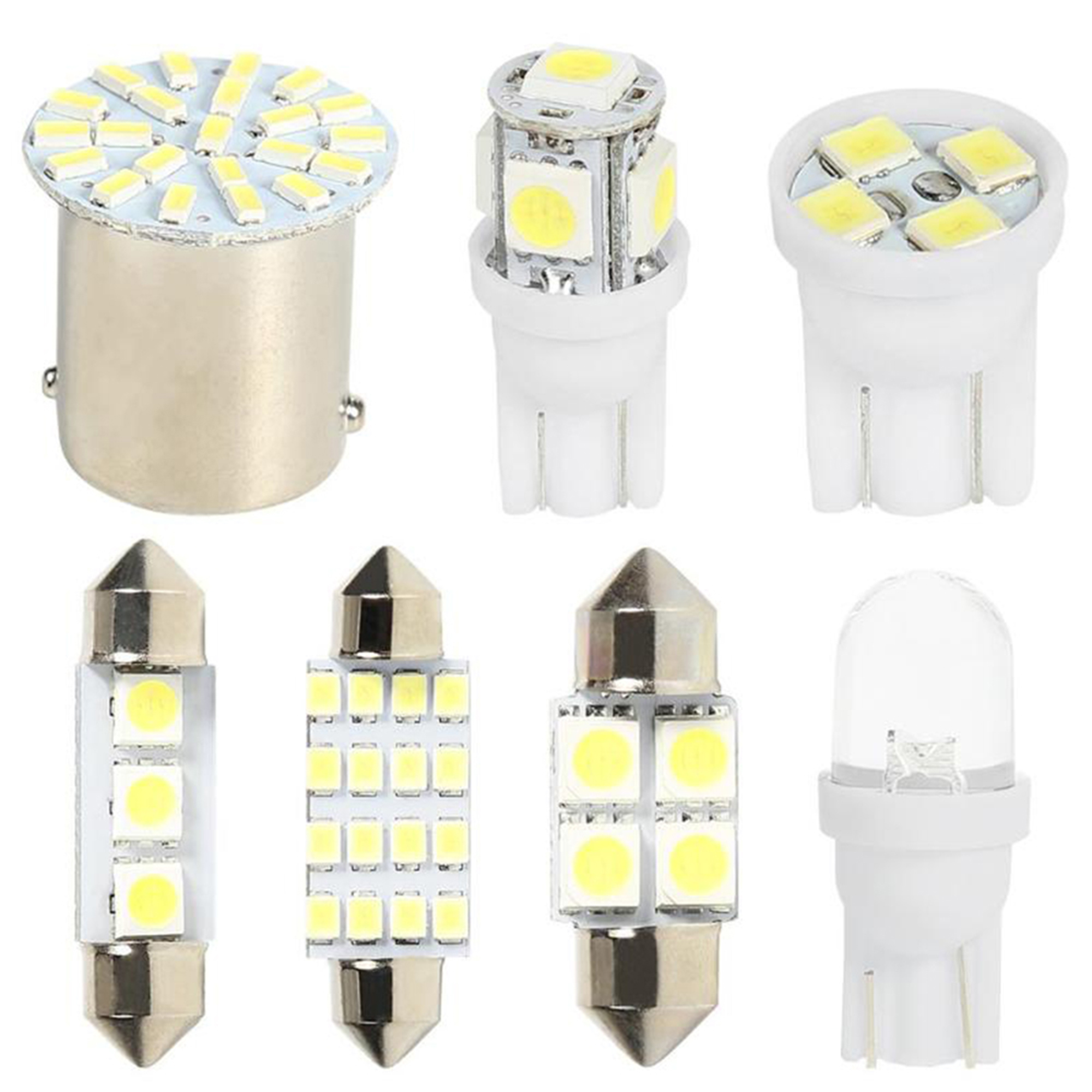 This Interior xenon white LED Kit Will Include The Following bulbs for general applications around the interior of your vehicle such as Dome, Map, Door, Glove Box, License Plates Etc :