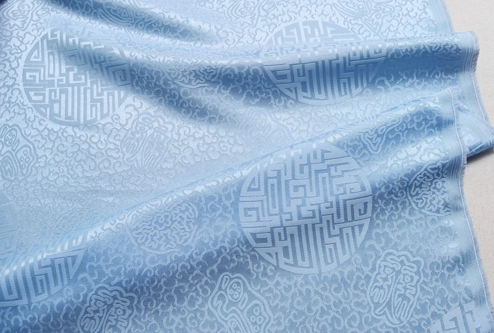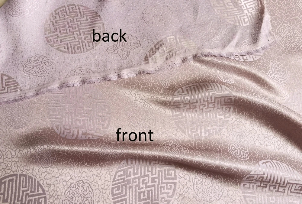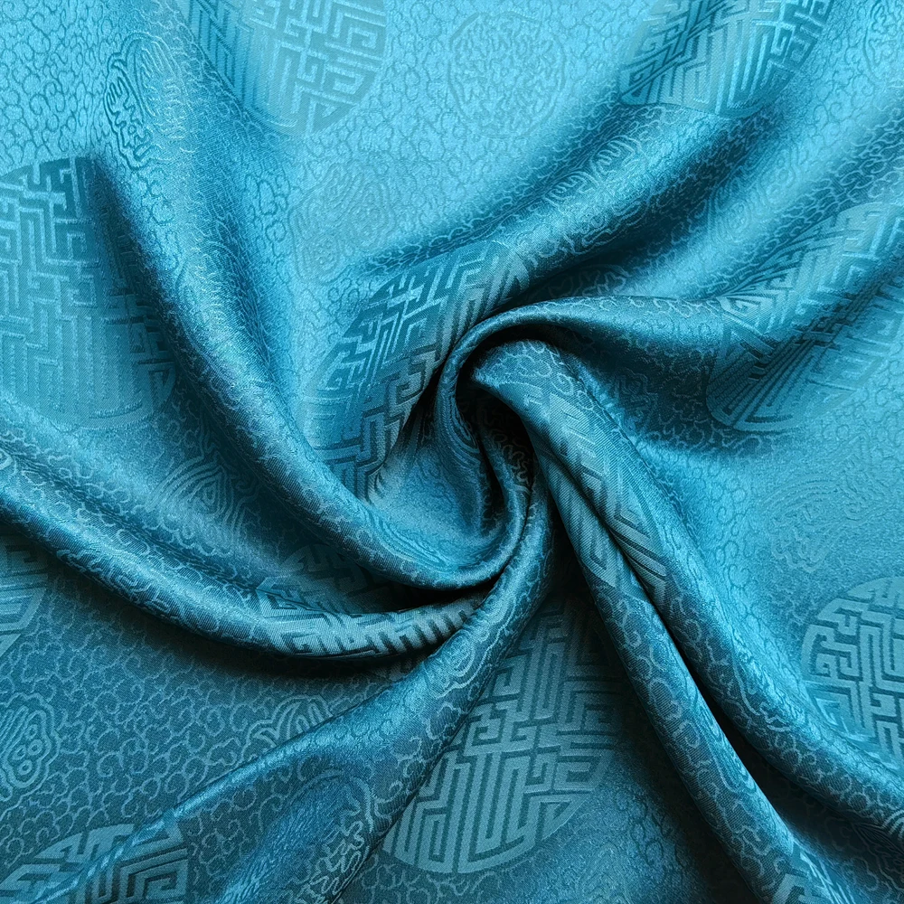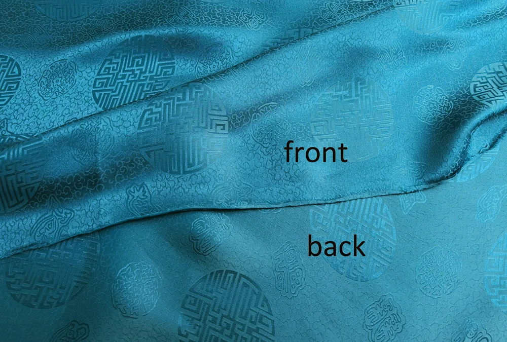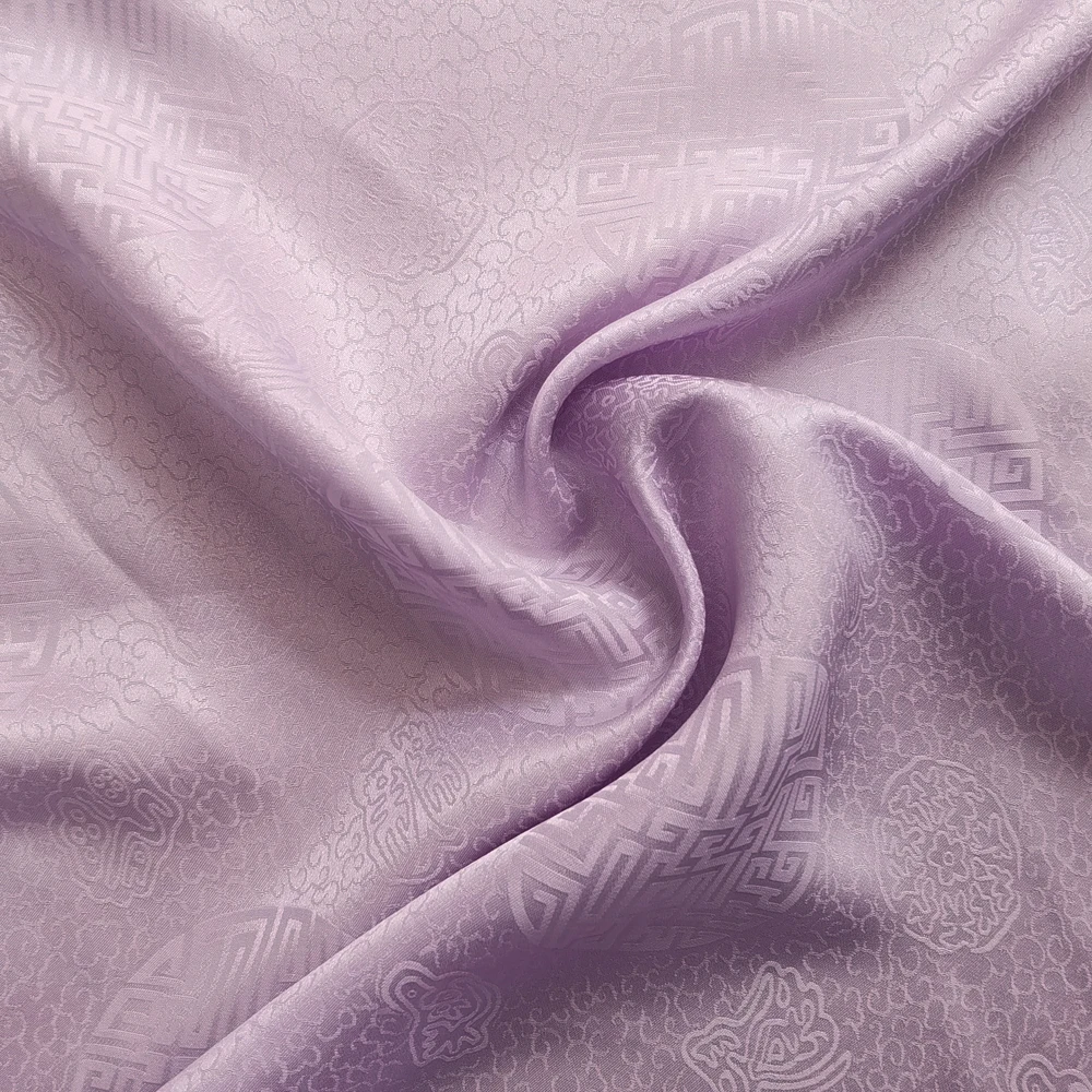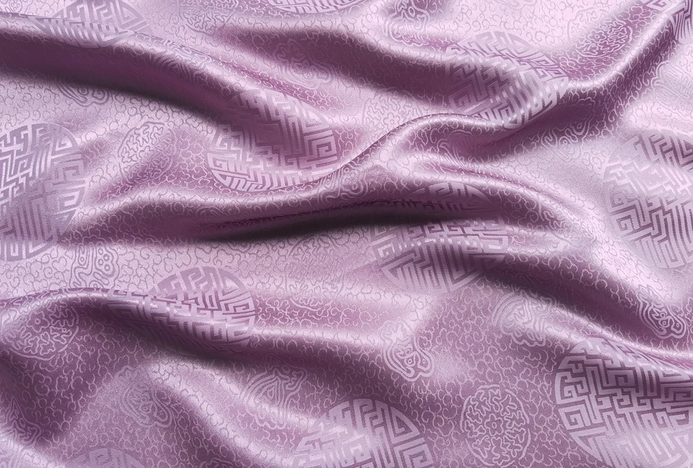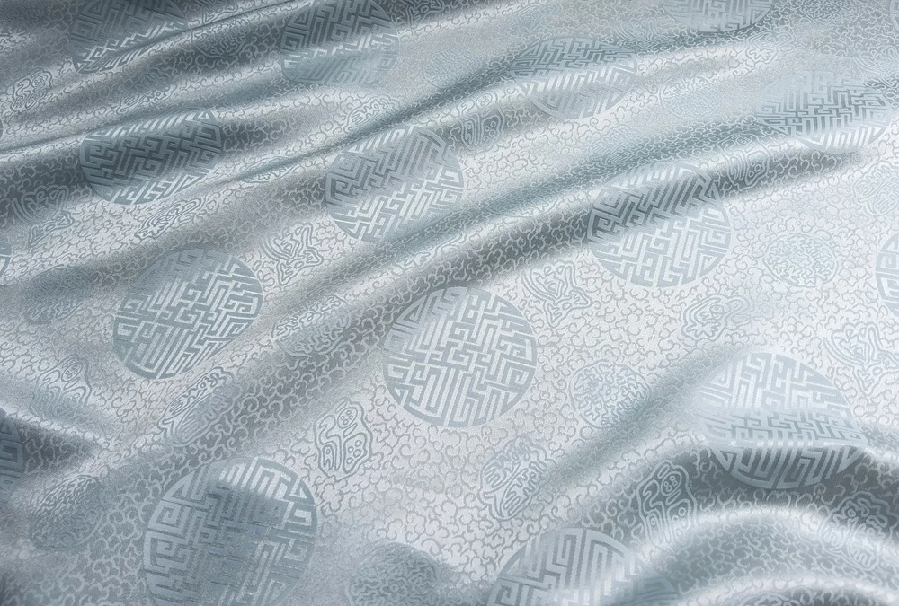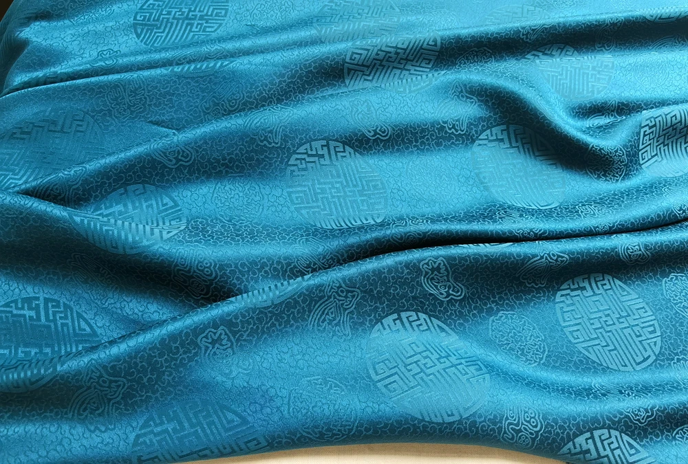 1)Material:Mulberry Silk + Cotton Blended Charmeuse Jacquard,45" Wide,Quality 17momme,Chinese Traditional Pattern