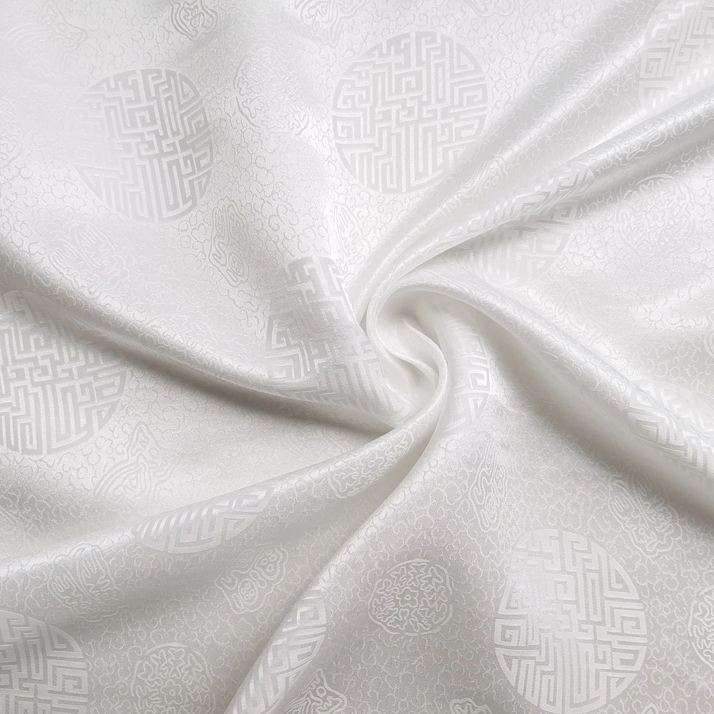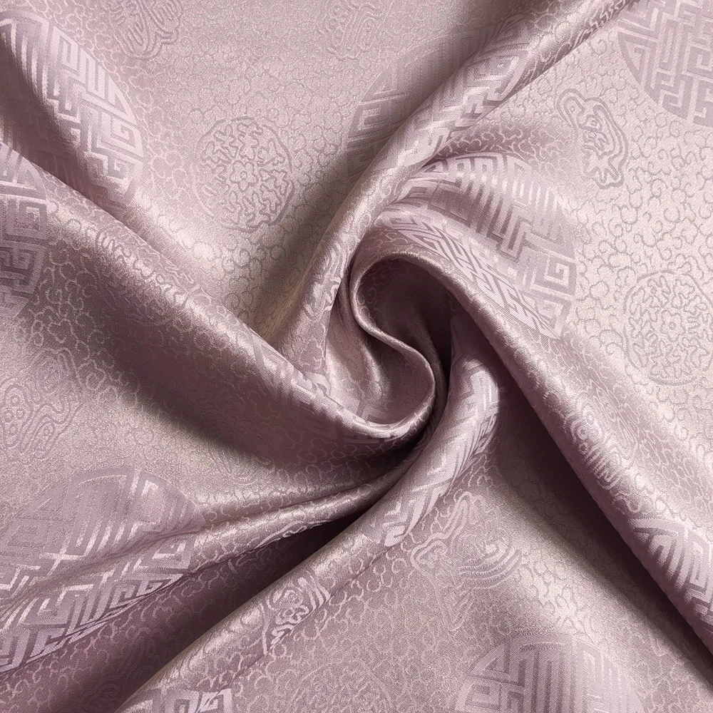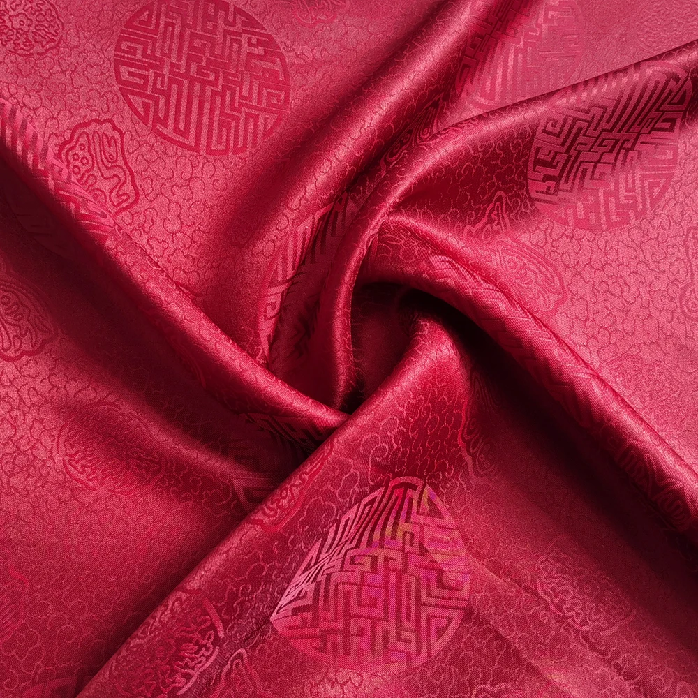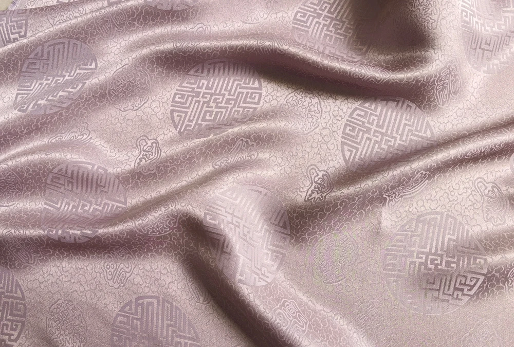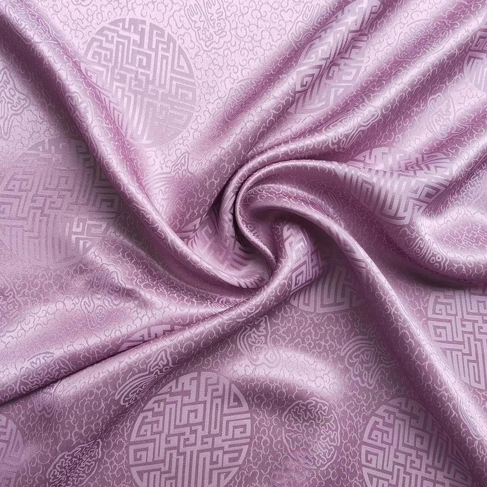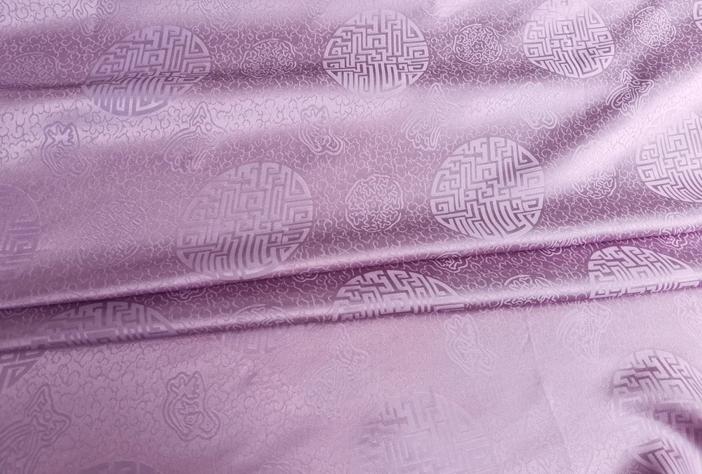 1)Material:Mulberry Silk + Cotton Blended Charmeuse Jacquard,45" Wide,Quality 17momme,Chinese Traditional Pattern