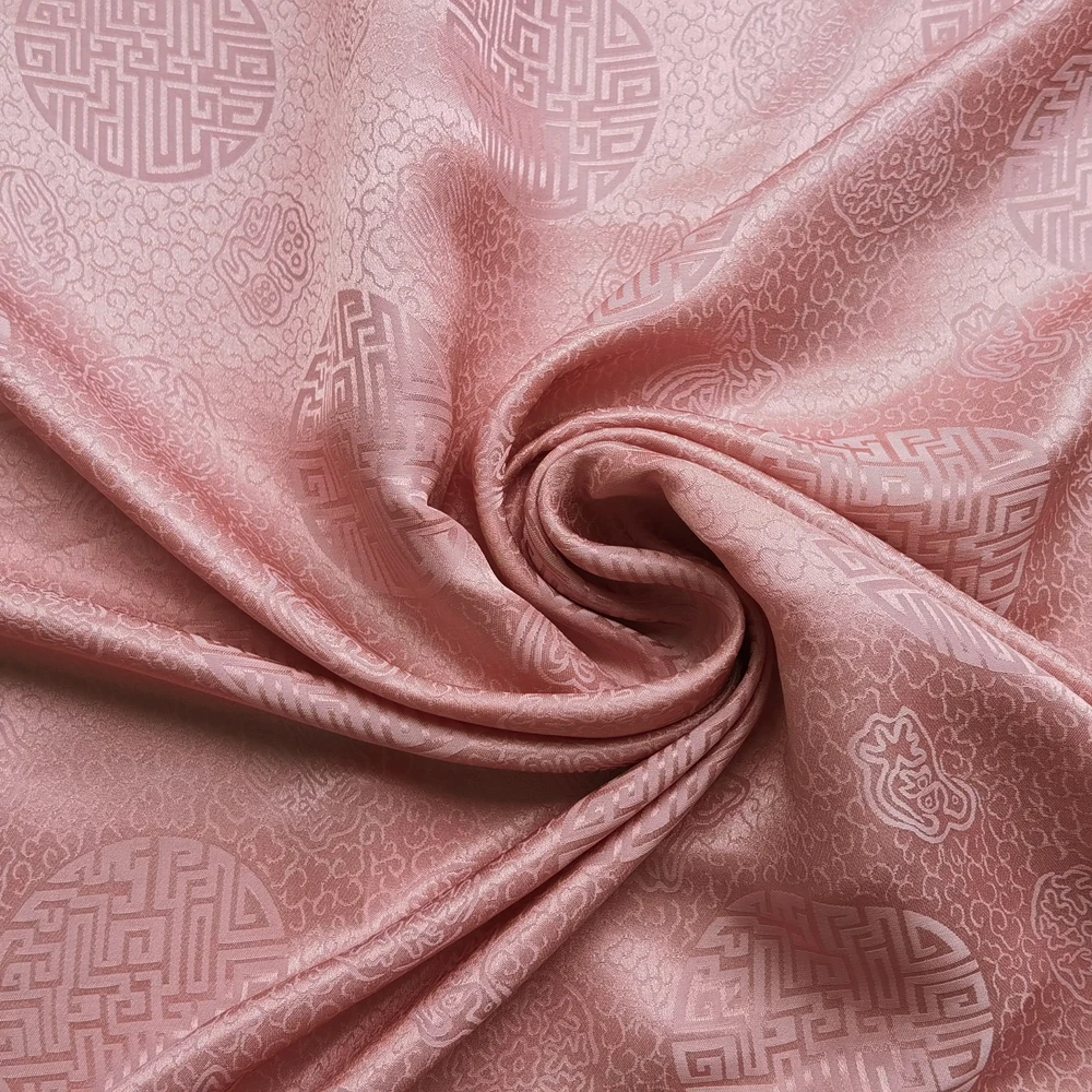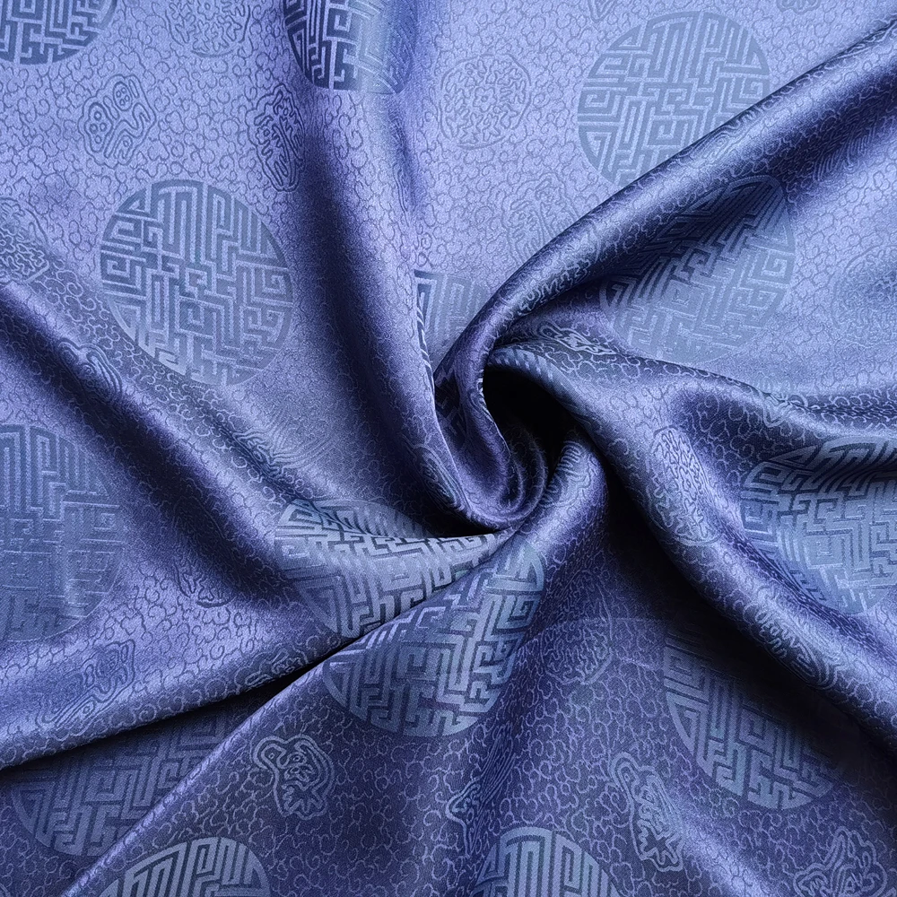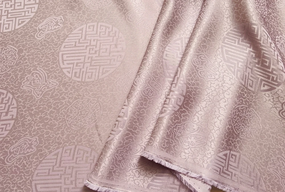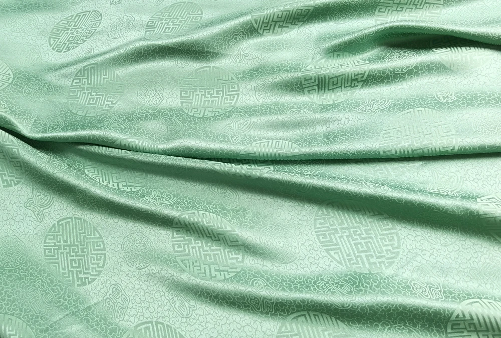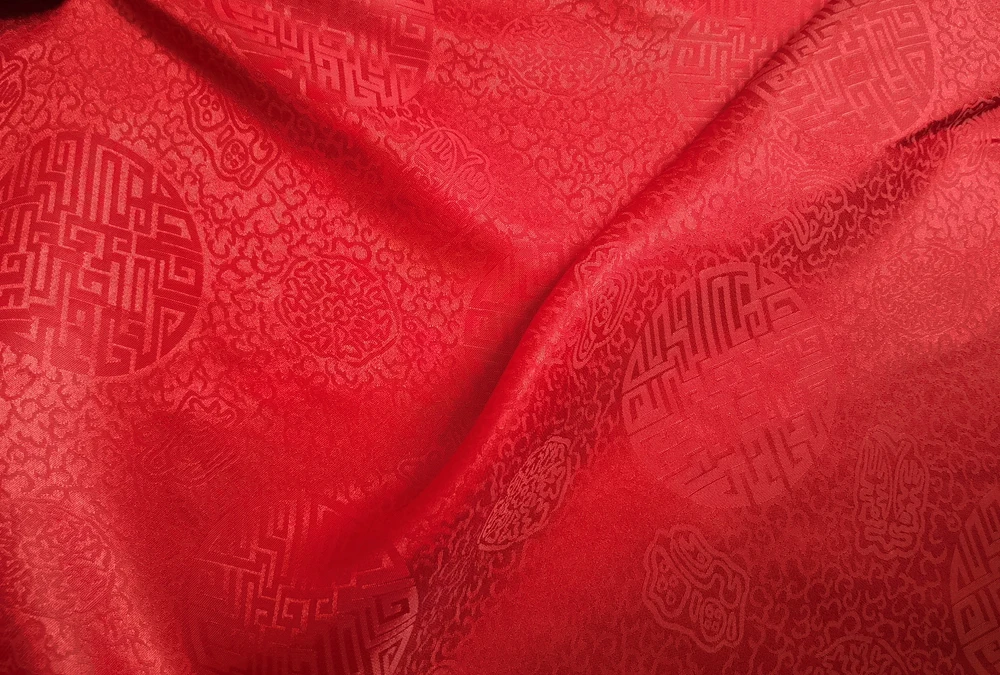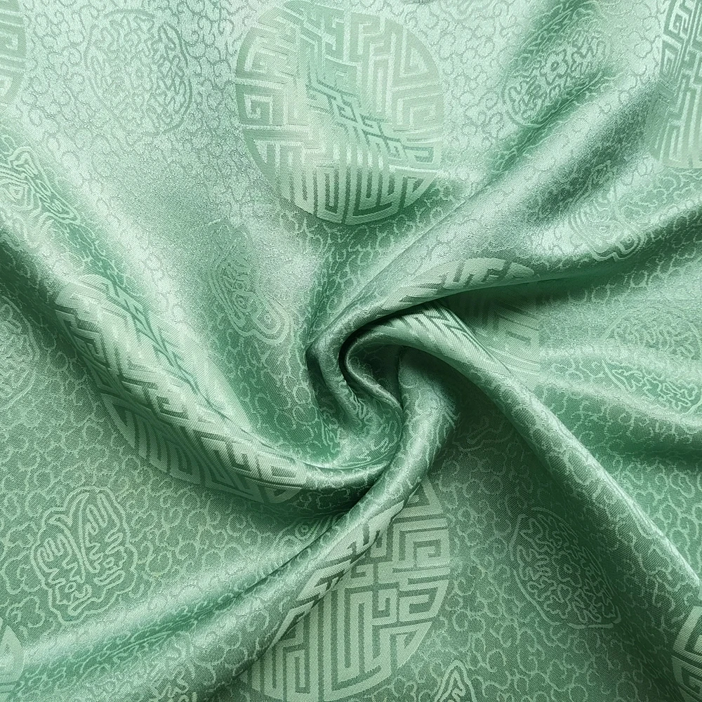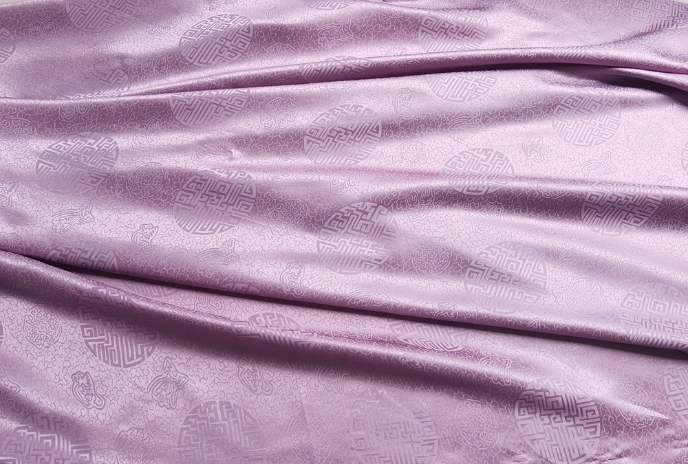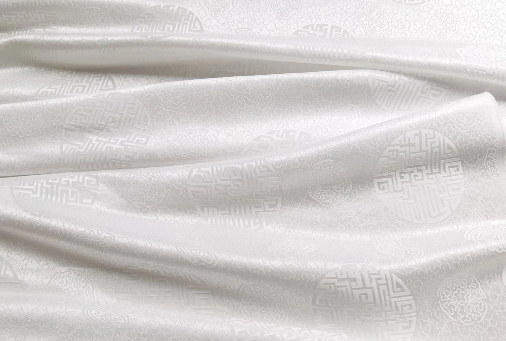 1)Material:Mulberry Silk + Cotton Blended Charmeuse Jacquard,45" Wide,Quality 17momme,Chinese Traditional Pattern