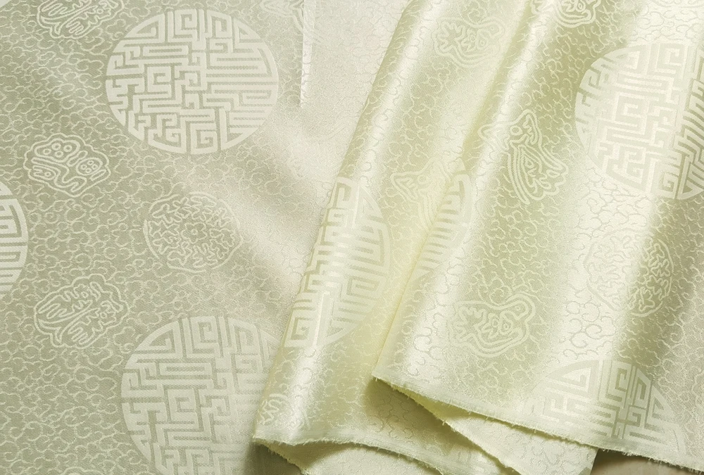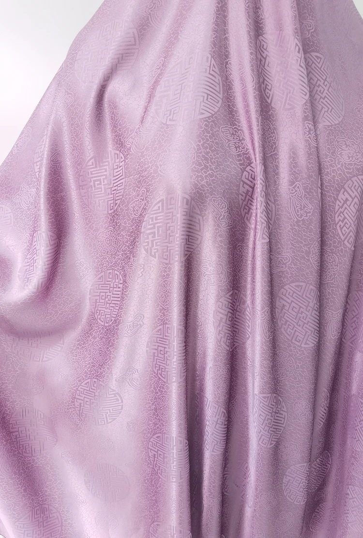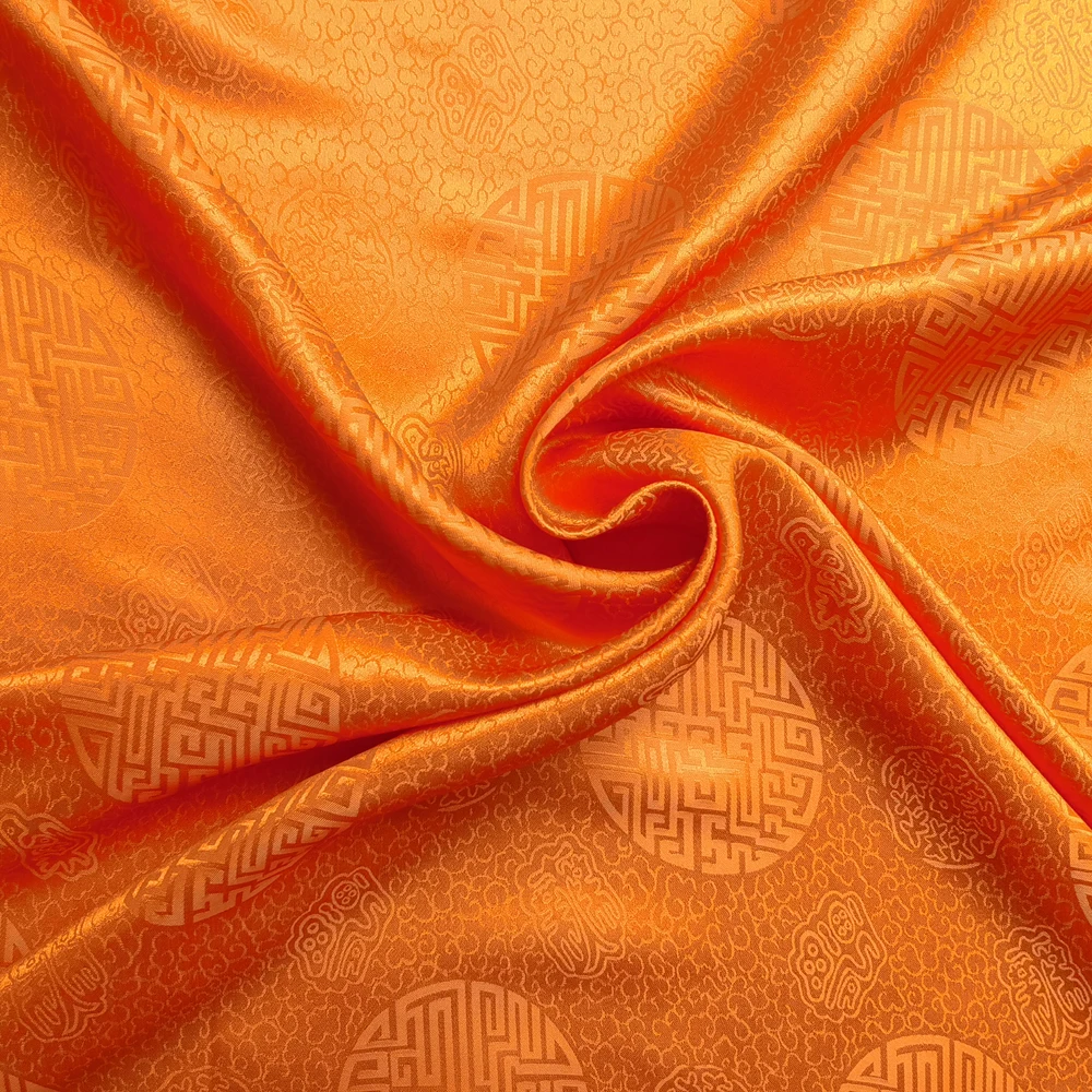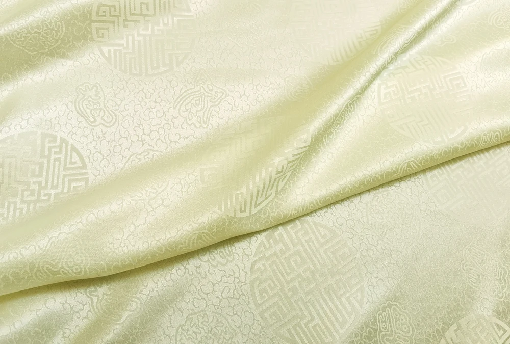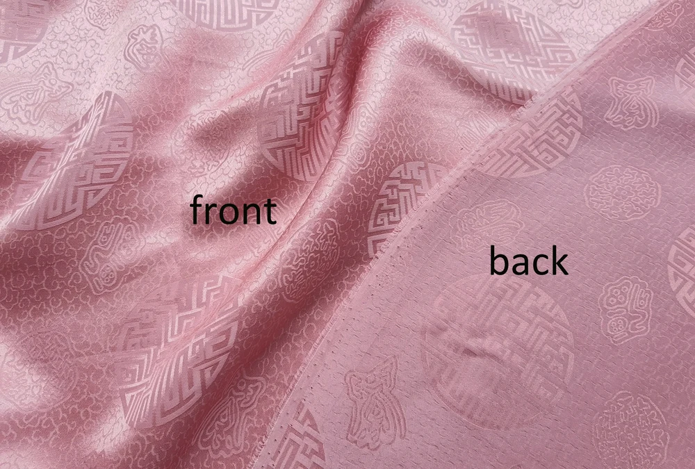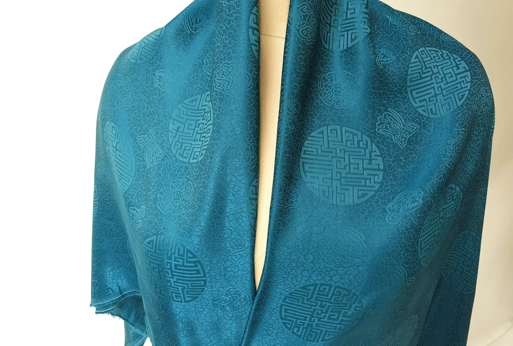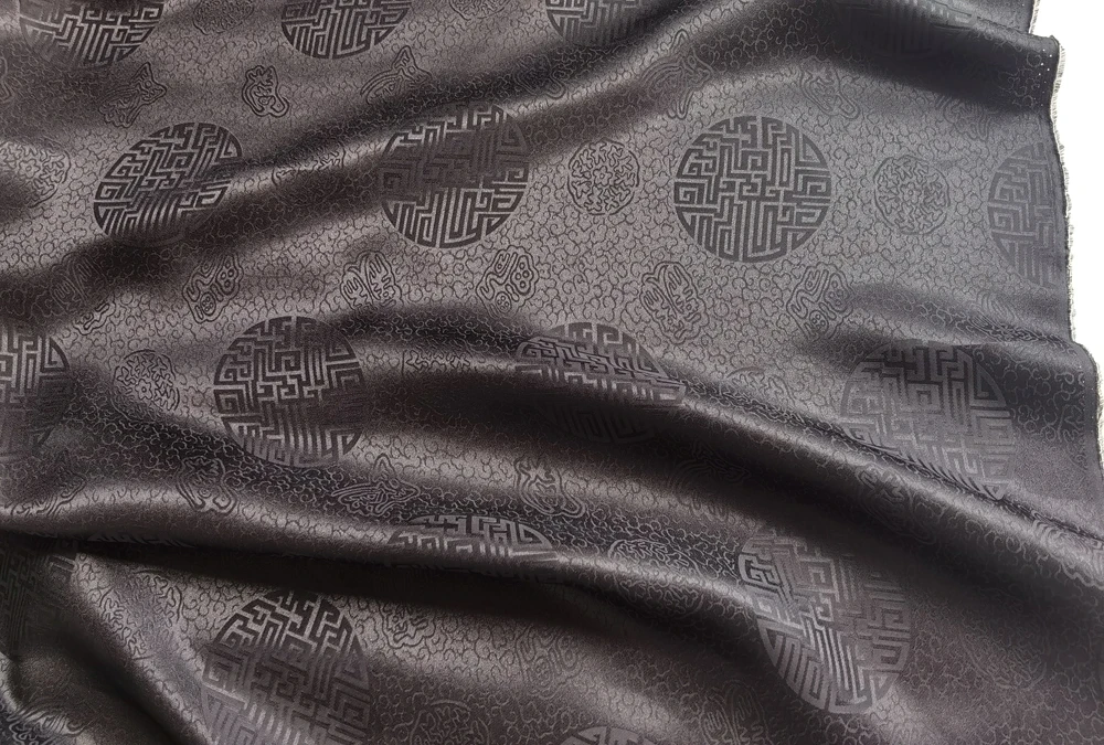 1)Material:Mulberry Silk + Cotton Blended Charmeuse Jacquard,45" Wide,Quality 17momme,Chinese Traditional Pattern