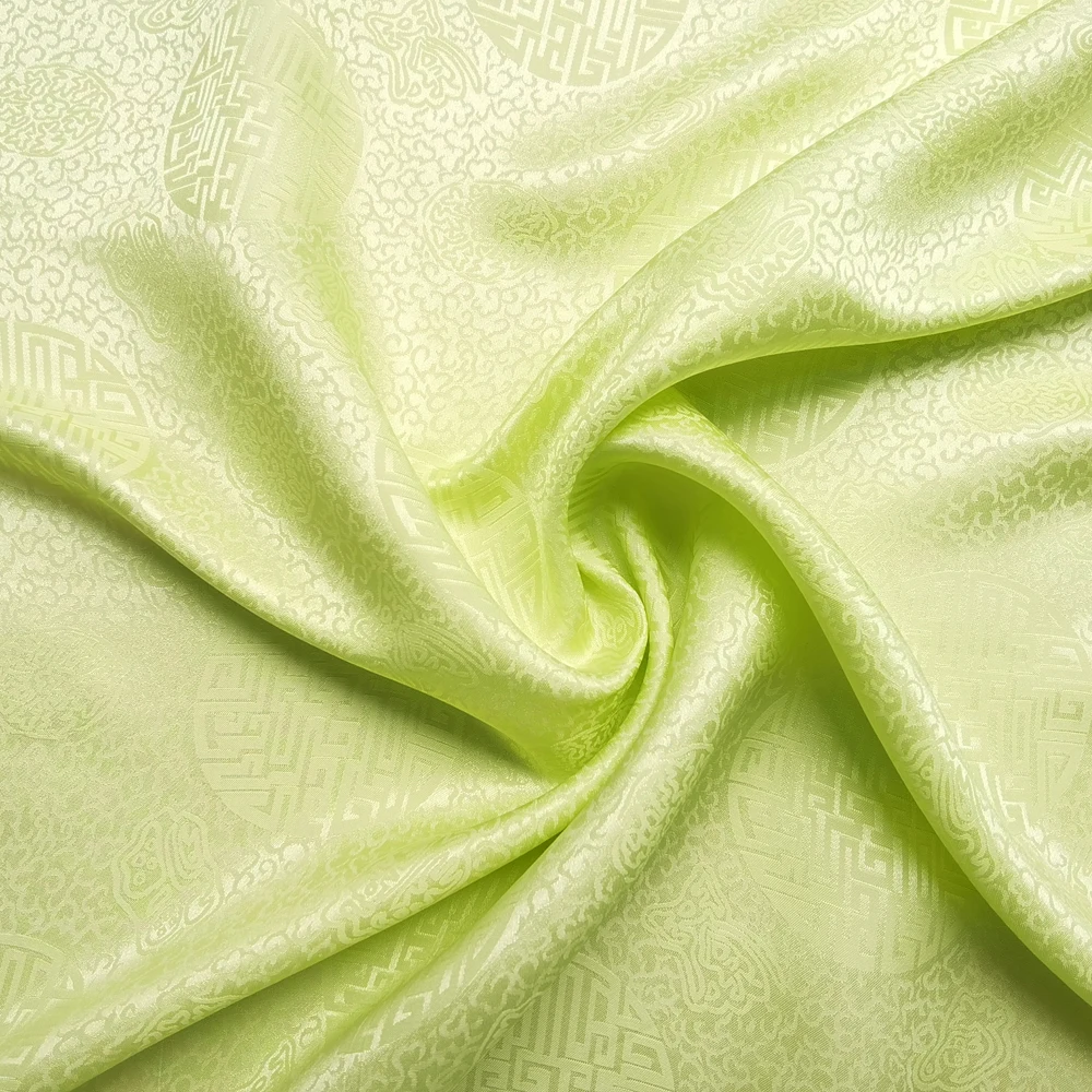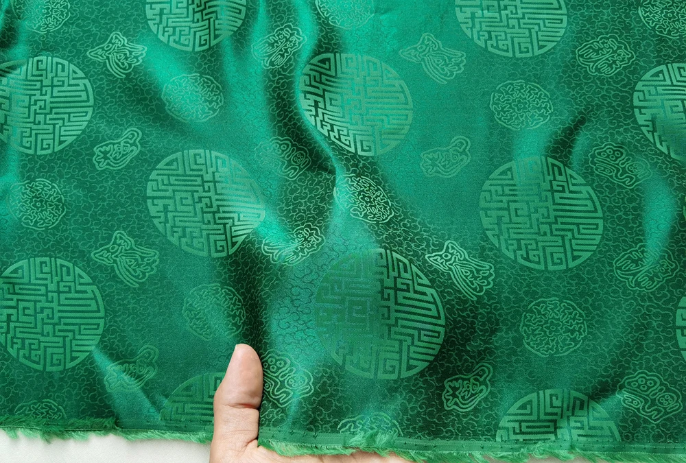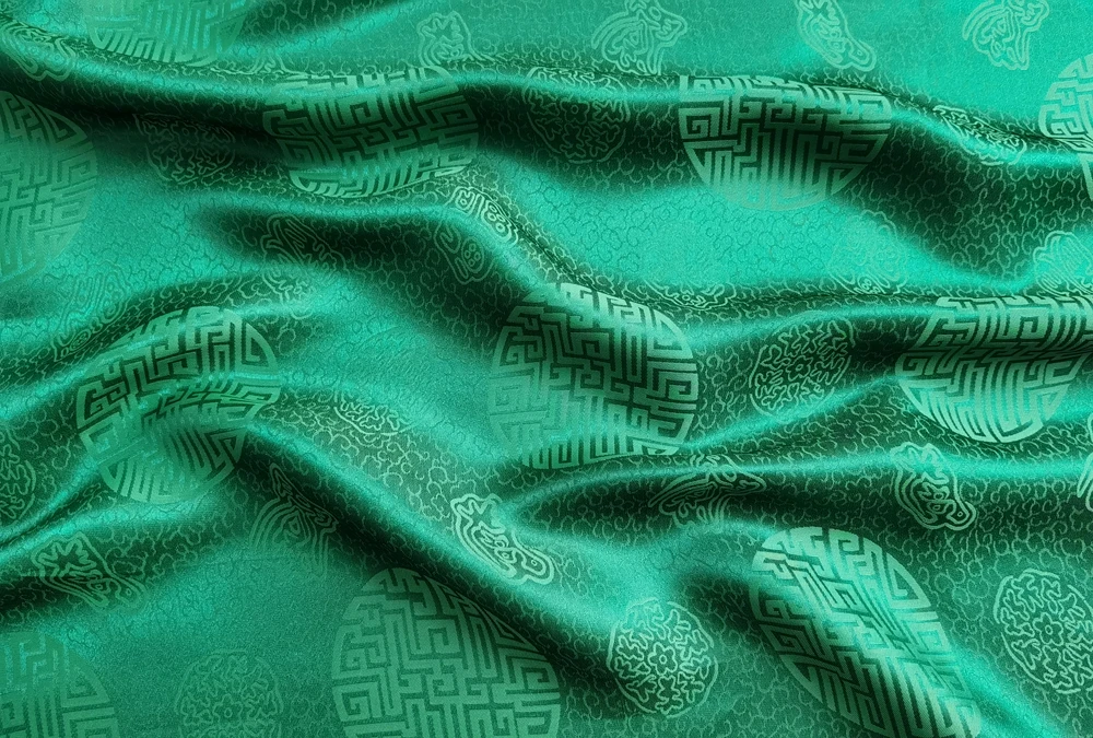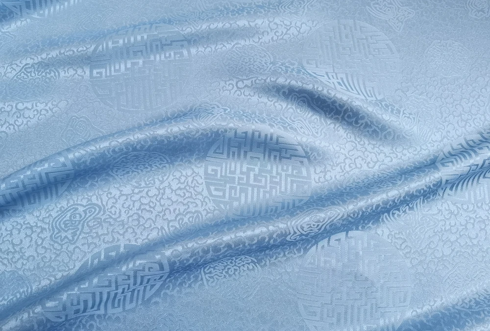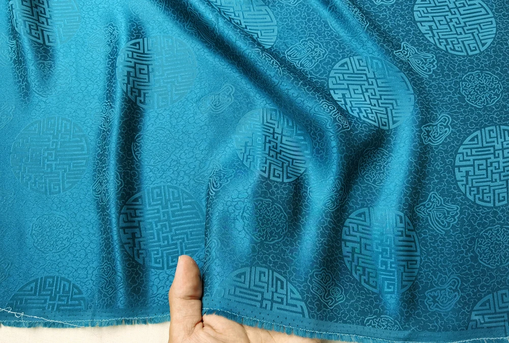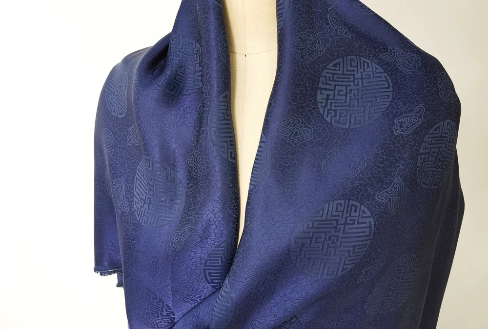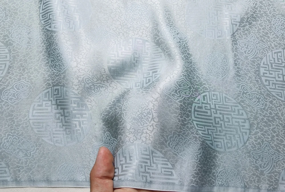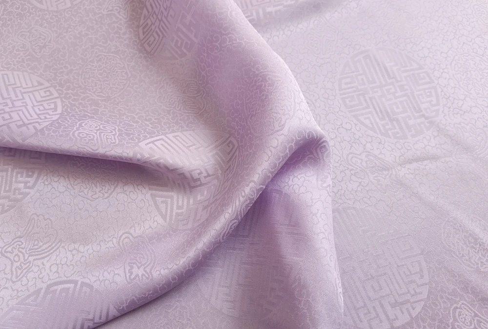 1)Material:Mulberry Silk + Cotton Blended Charmeuse Jacquard,45" Wide,Quality 17momme,Chinese Traditional Pattern