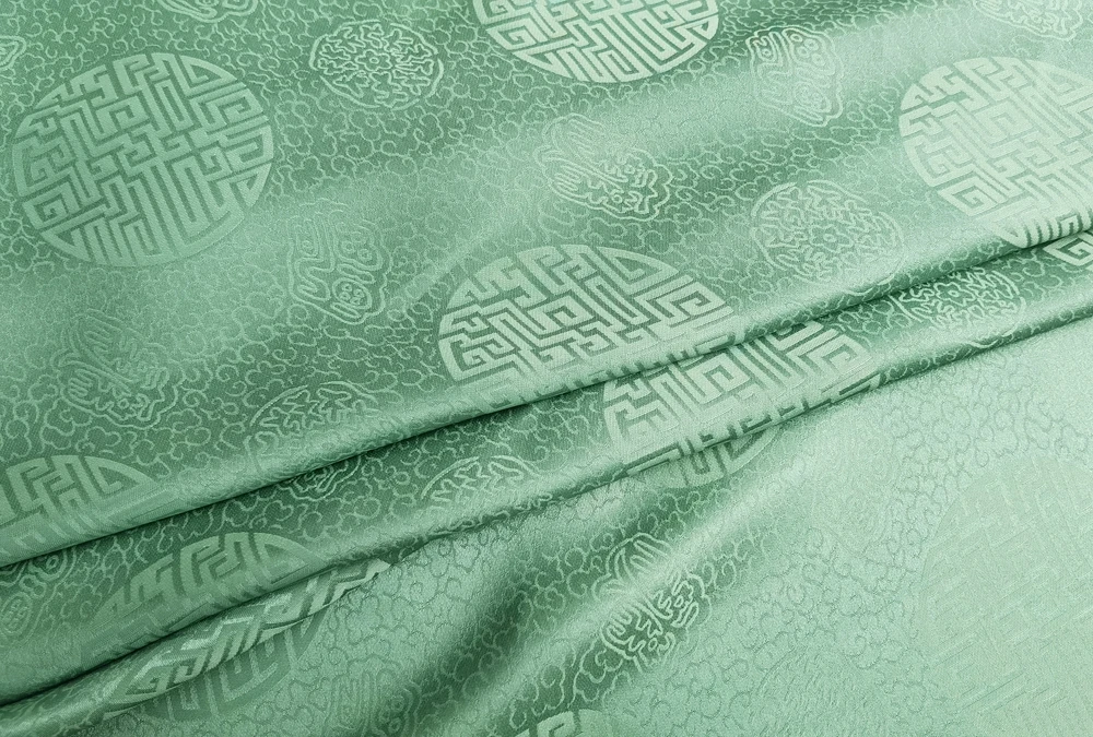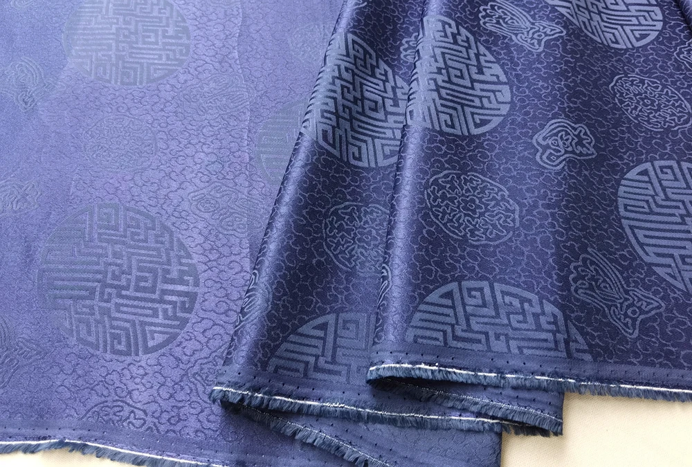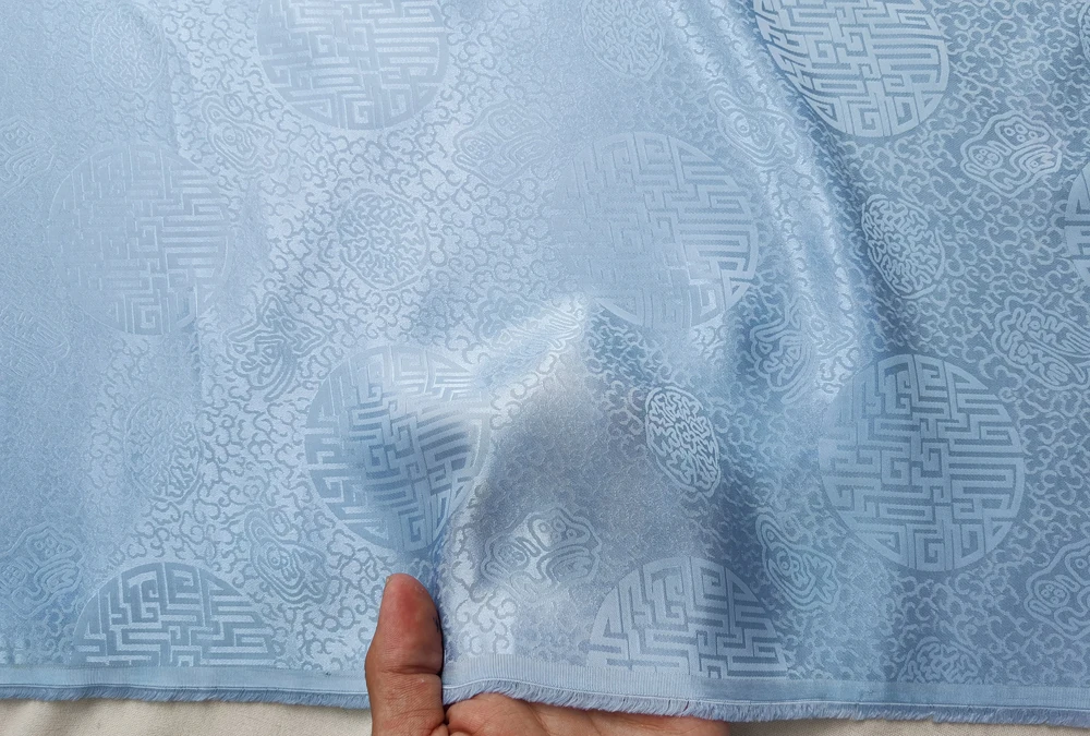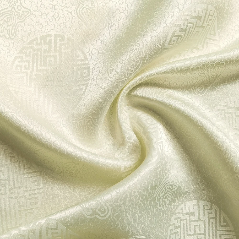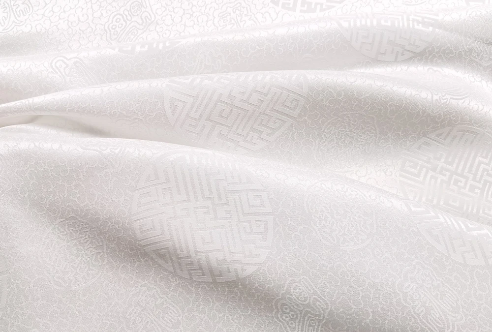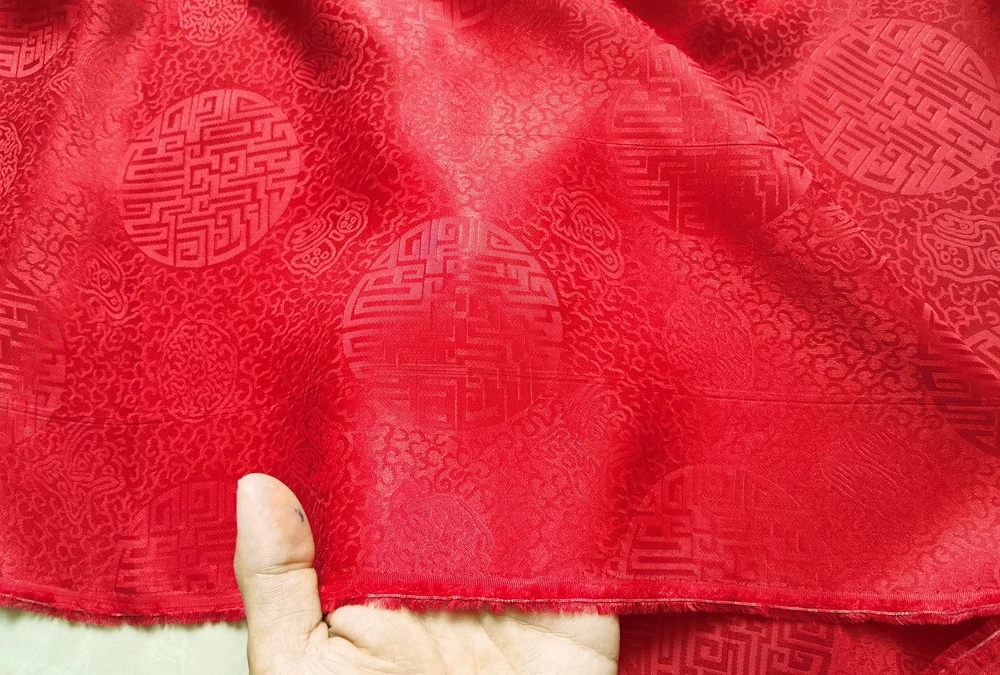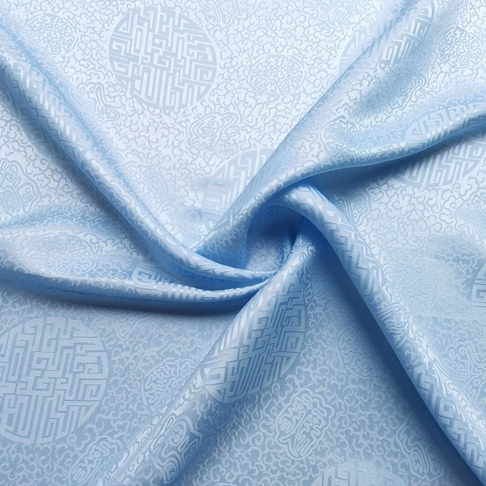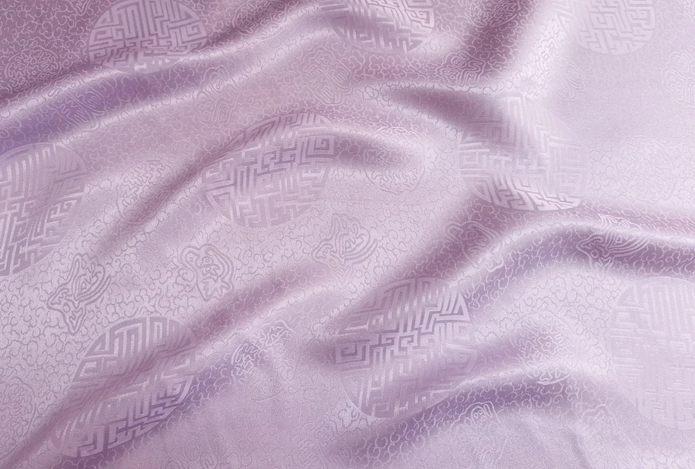 1)Material:Mulberry Silk + Cotton Blended Charmeuse Jacquard,45" Wide,Quality 17momme,Chinese Traditional Pattern