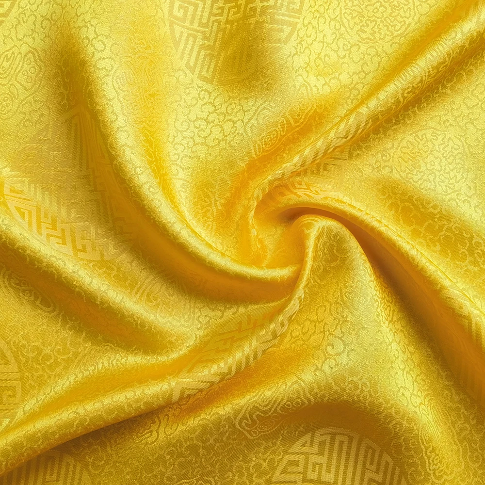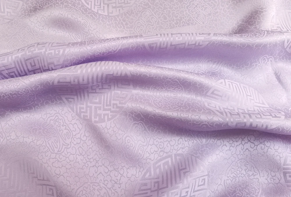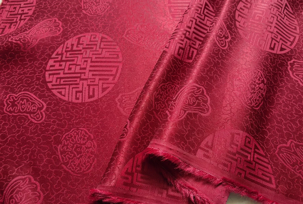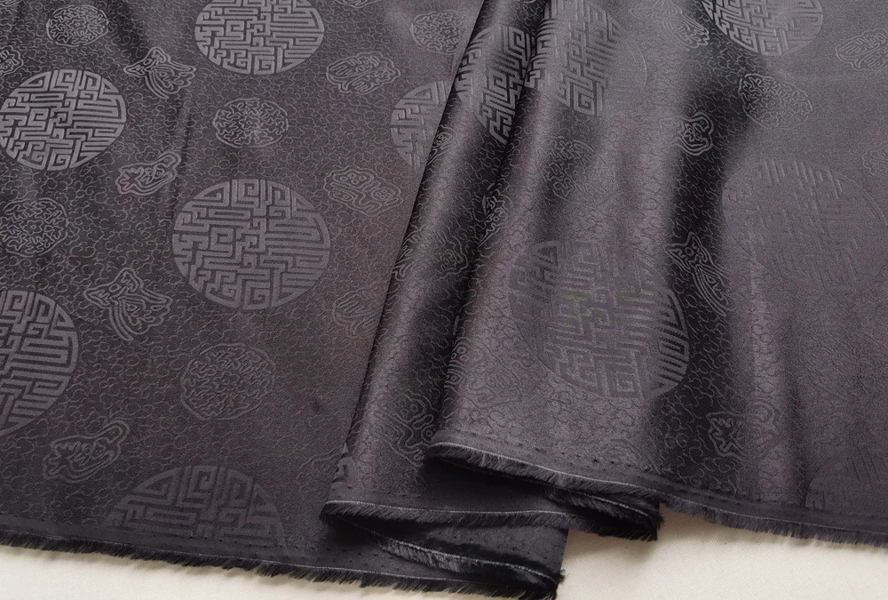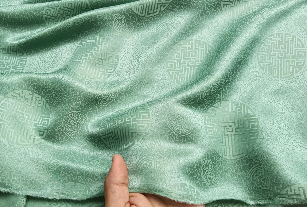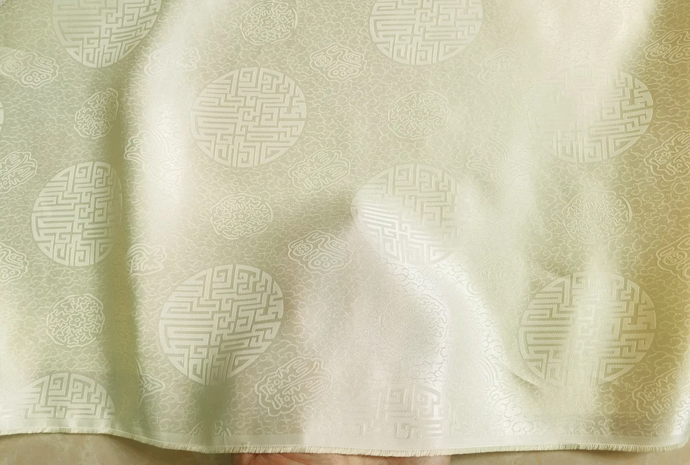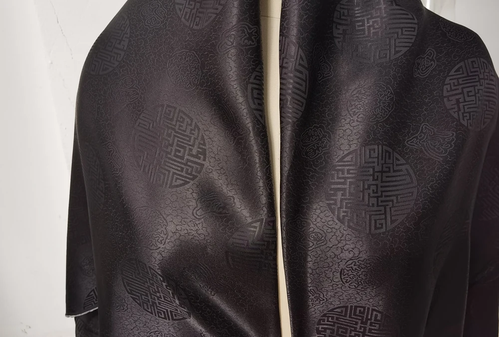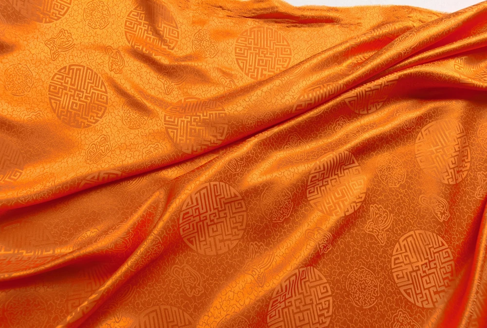 1)Material:Mulberry Silk + Cotton Blended Charmeuse Jacquard,45" Wide,Quality 17momme,Chinese Traditional Pattern