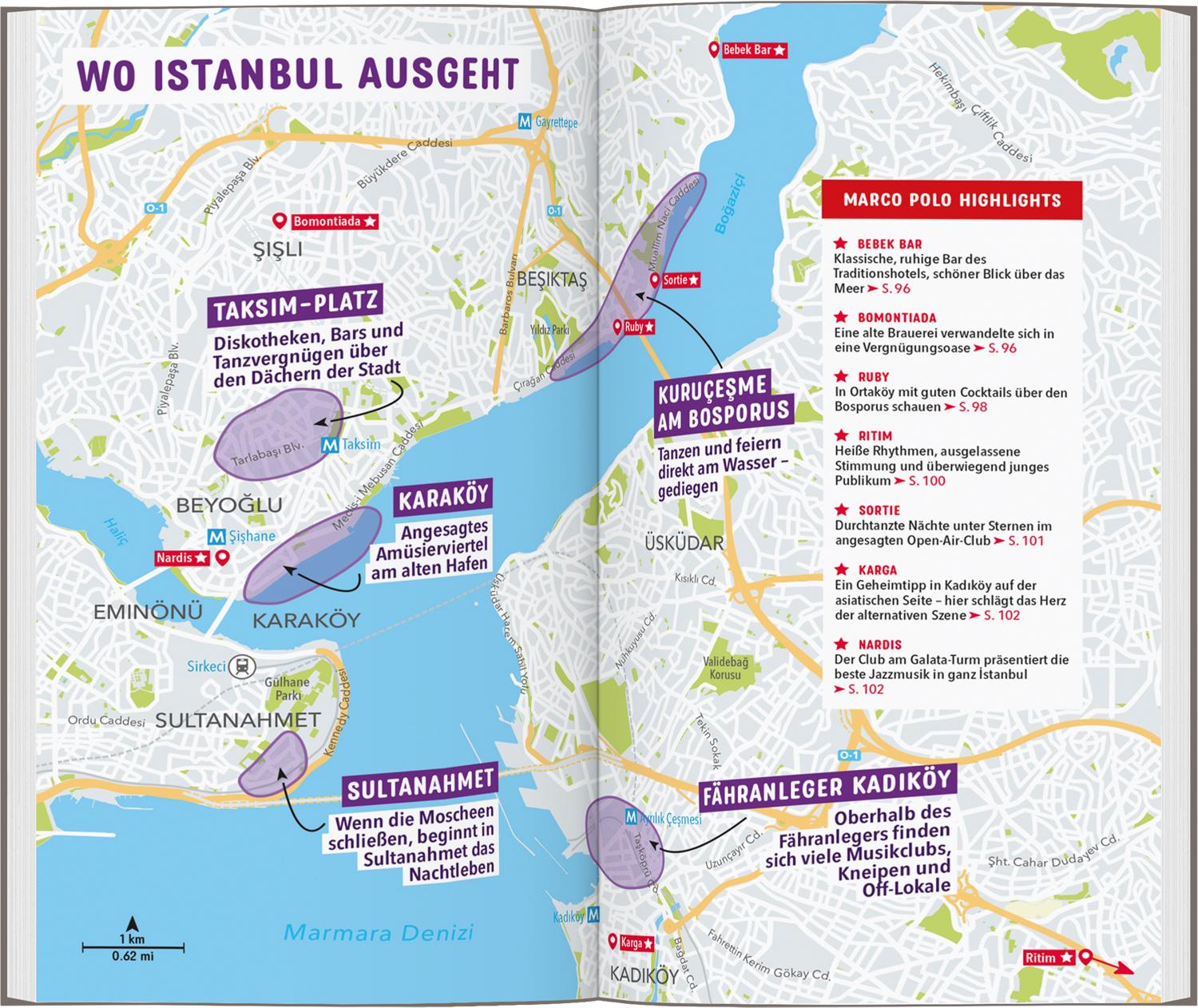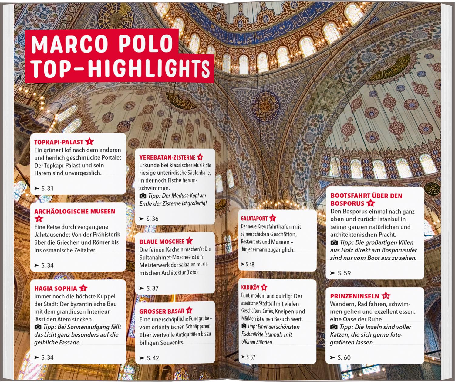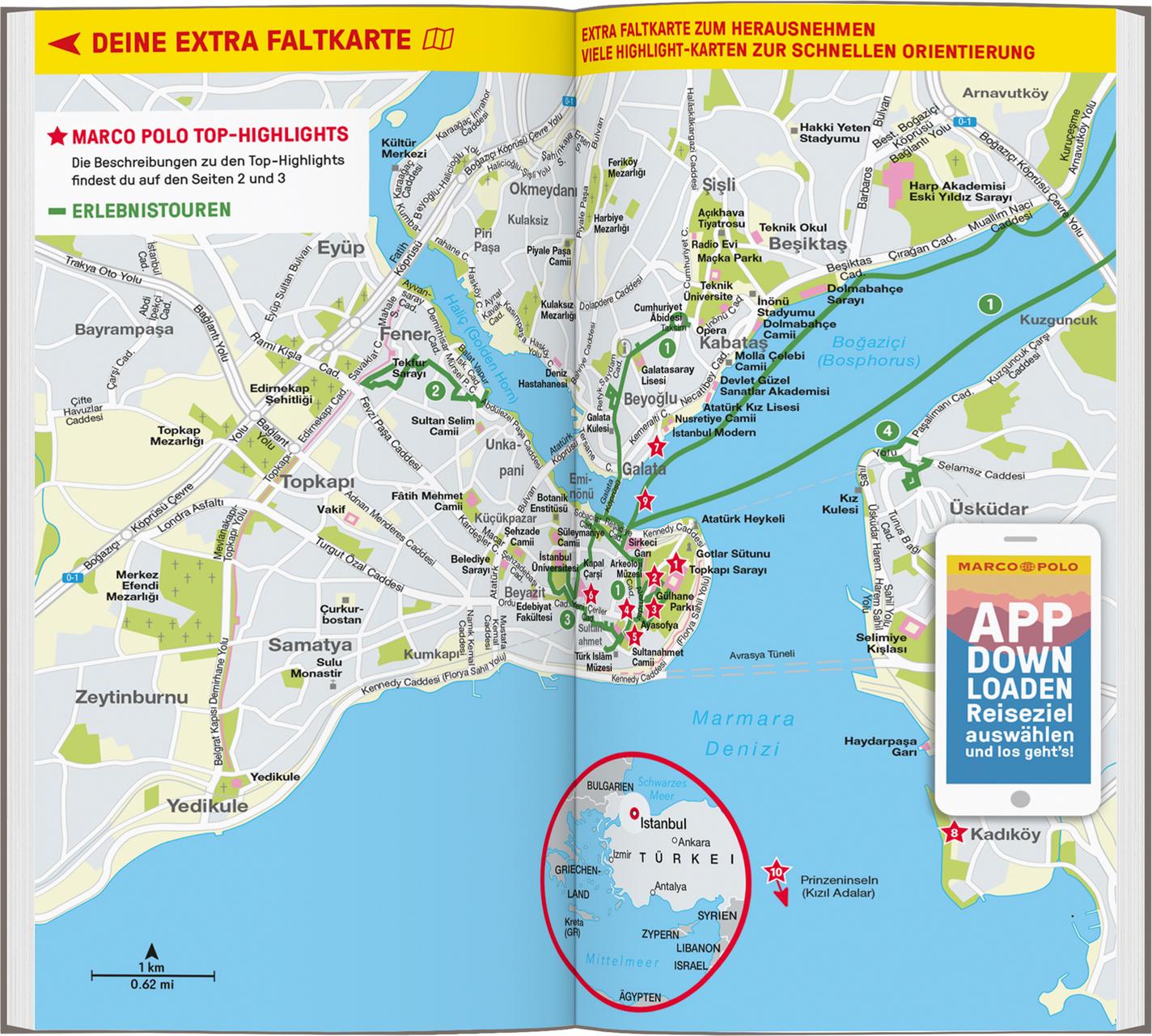 In deinem MARCO POLO Reiseführer für Istanbul findest du Wissenswertes zu Stadt und Kultur, Tipps für Übernachtungen und Restaurants sowie Infos zur Anreise und zum ÖPNV. Vor Ort stellst du dir mit dem Metroplan, den komplett überarbeiteten Highlight-Karten