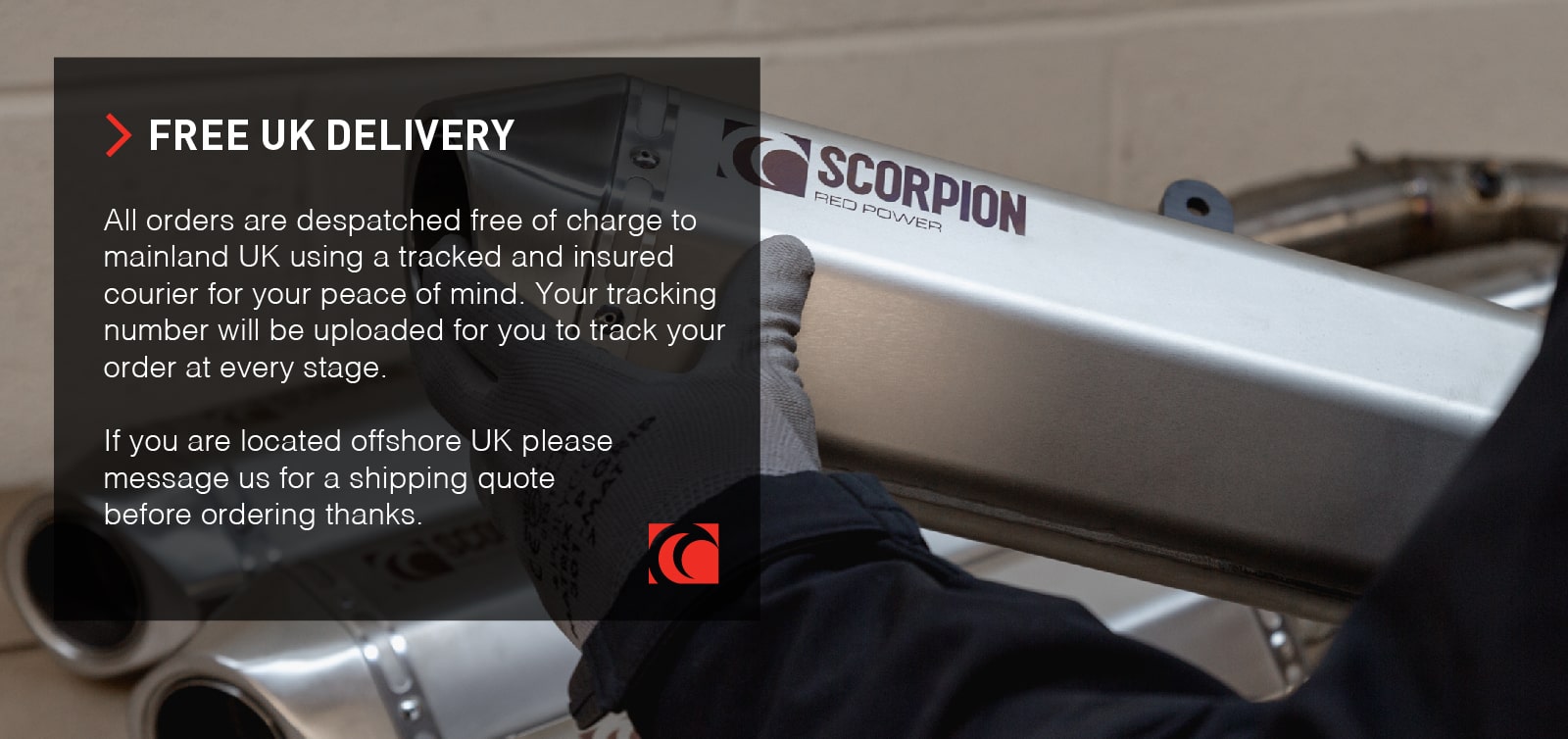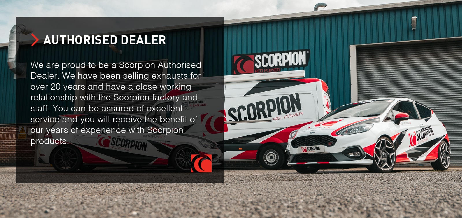 We are proud to be a Scorpion Authorised Dealer. We have been selling exhausts for over 20 years and have a close working relationship with the Scorpion factory and staff. You can be assured of excellent service and you will receive the benefit of our years of experience with Scorpion products.