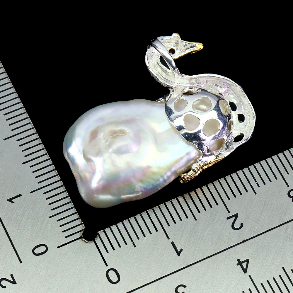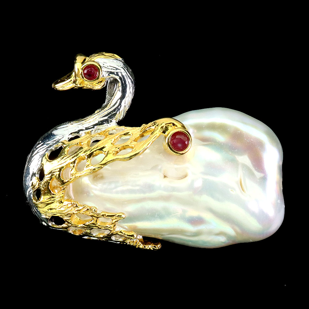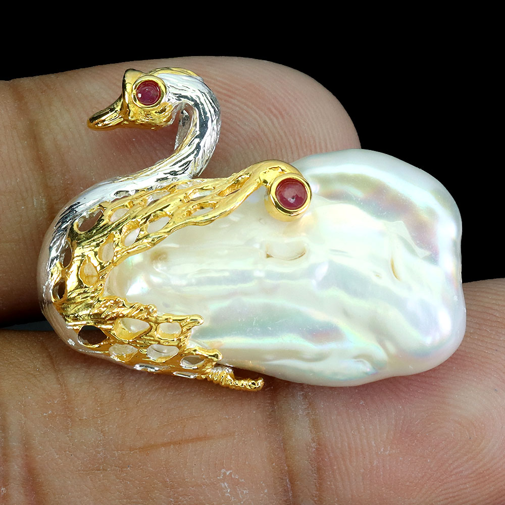 925 Sterling Silver Pendant Round Ruby Myanmar 2.5mm Pearl Swan Gemstone Jewelry