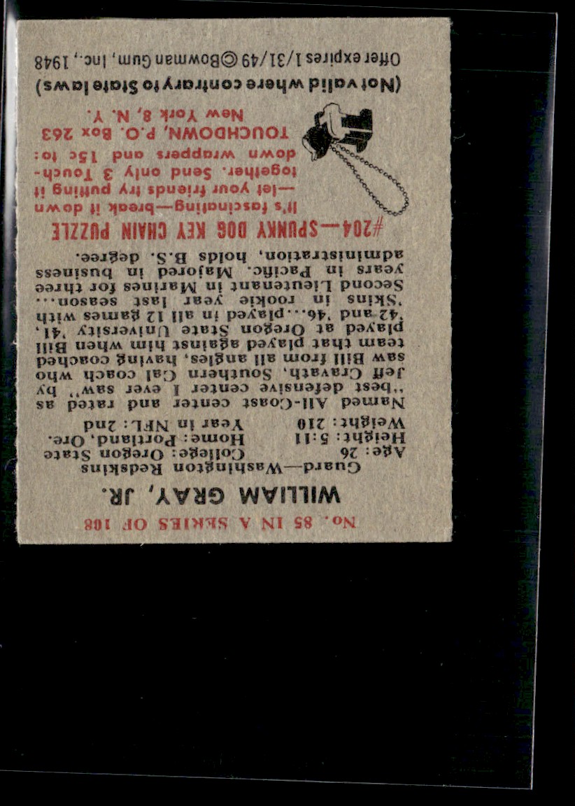 | 1948 Bowman William Gray EX Set Break #85 |
