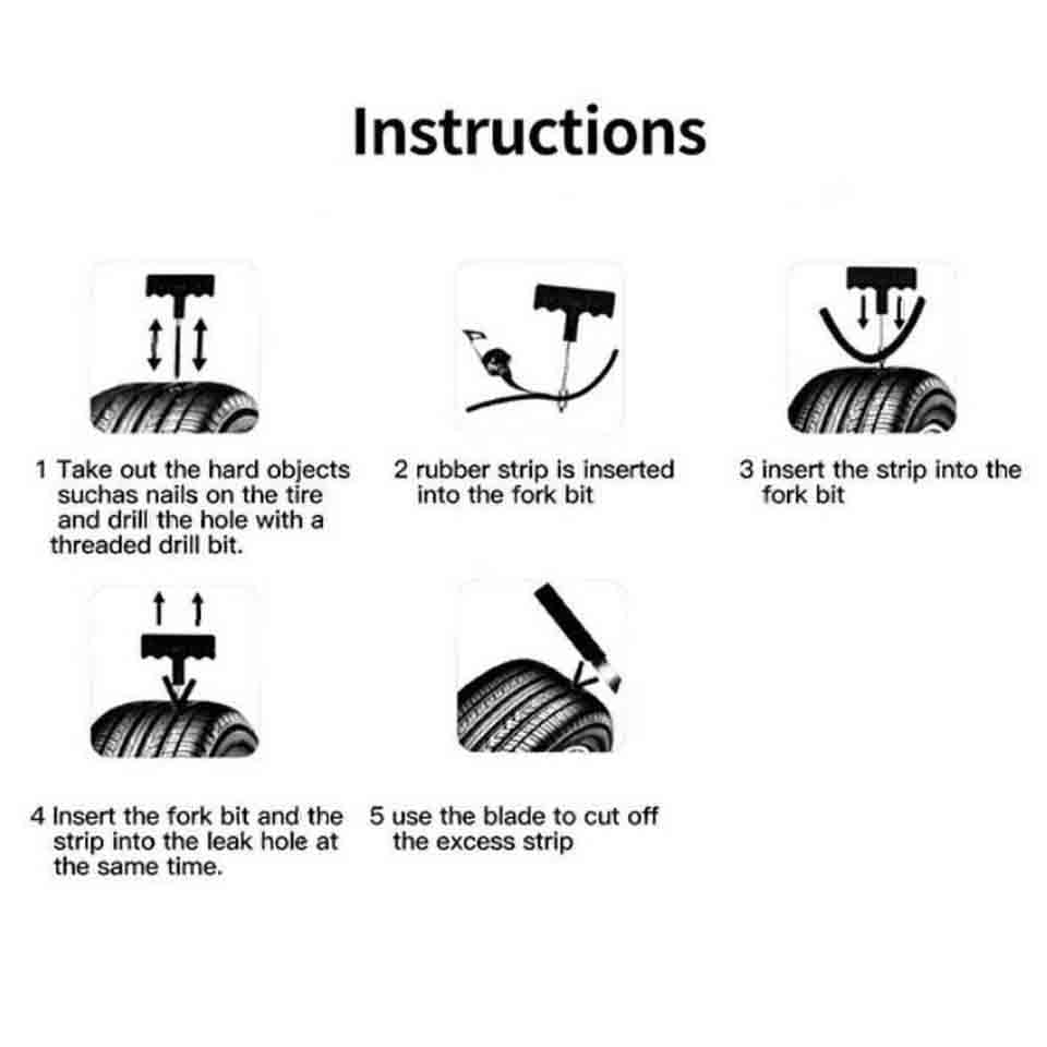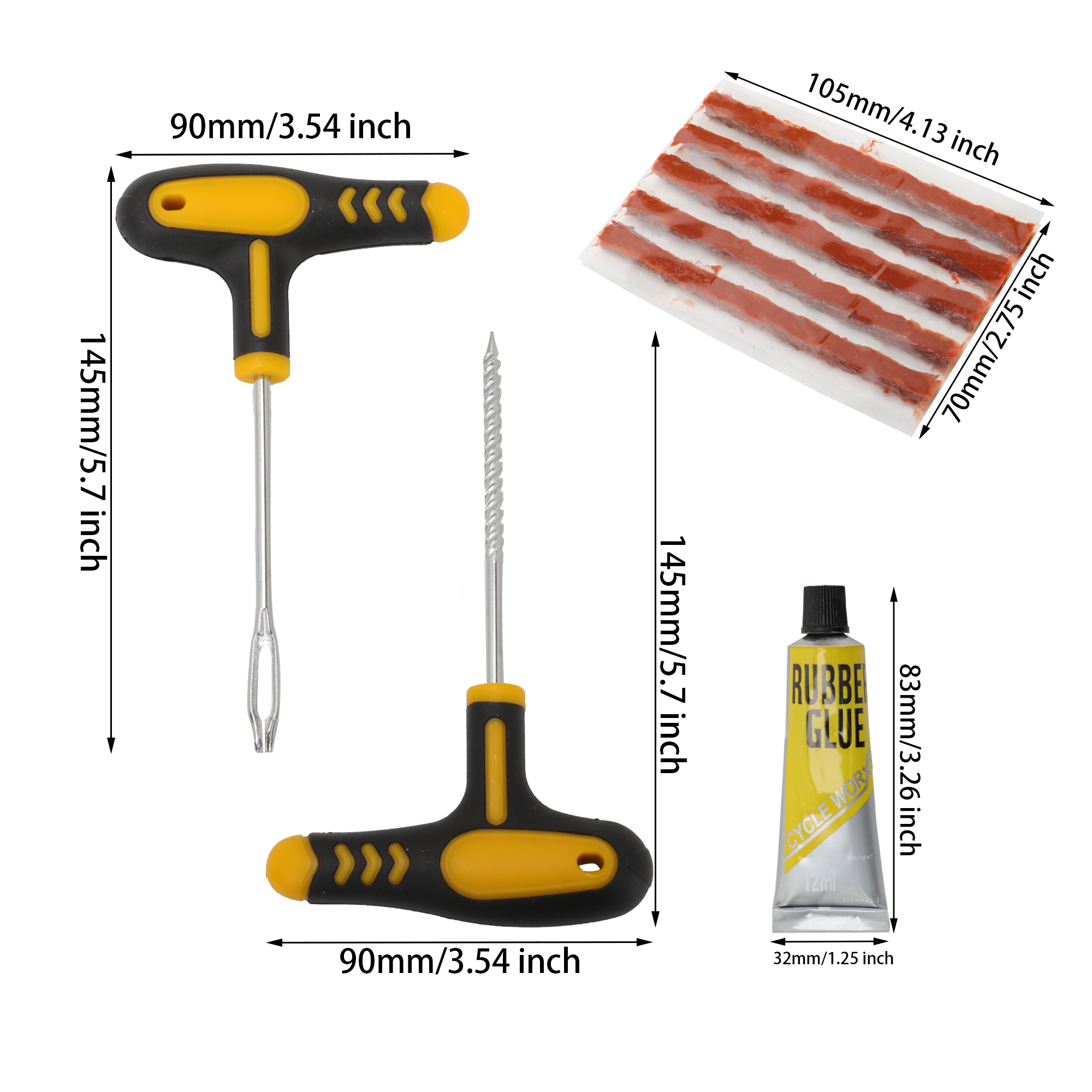 Emergency Tubeless Tyre Tire Puncture Repair Tool Kit includes: