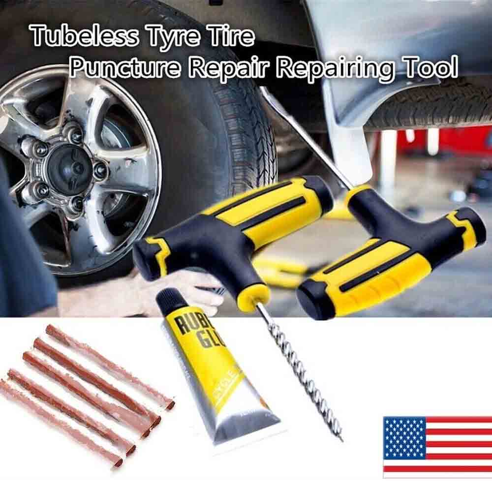 Car Tubeless Tyre Tire Puncture Repair Plug Repair Kit Needle Patch Fix Tool Set