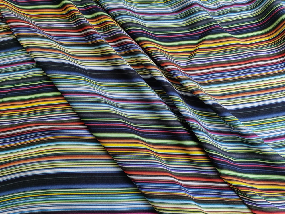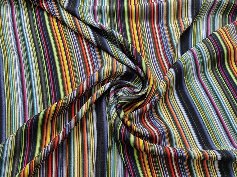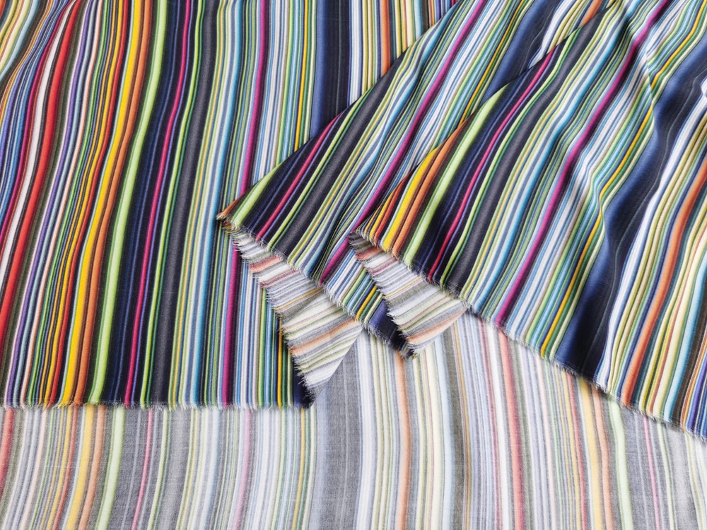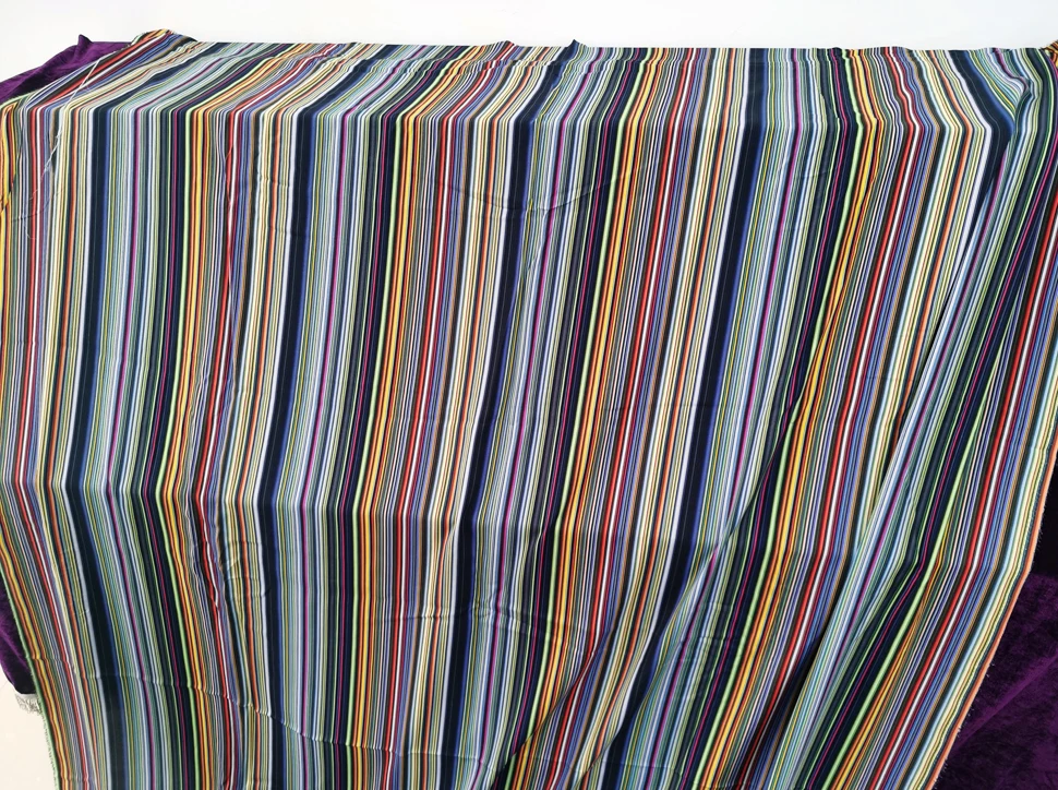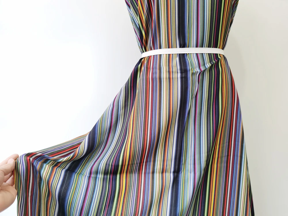 Size: Fabric width: Fixed width 140cm (55"). Length options: 1yard, 2yards, 5yards. Multiple orders will cut one continuous piece. Example: - Order 3 x 1yard = 1 uncut 3yards piece. - Order 3 x 2yards = 1 uncut 6yards piece. - Order 1 x 1yard + 1 x 2yards = 1 uncut 3yards piece. 1)Material:100% Viscose (Rayon) Fabric,55" Wide,Drape,Soft Cold Smoothe Feel And Breathable 2)Style#:BY-CTMC 3)Spec:Medium Thickness 150 g/Yard,Shrinkage Around 10% 4)Design:Digital Print Colored Stripe,Non-transparent 5)Suitable For:DIY Sewing,Shirt,Dress,Robe,Abaya,Qipao,Pajamas,Scraf,Headkerchief,Summer bedding,Children clothing,Handicrafts 6)Washing instructions:It is recommended to use neutral detergent and handwash with water below 30°.