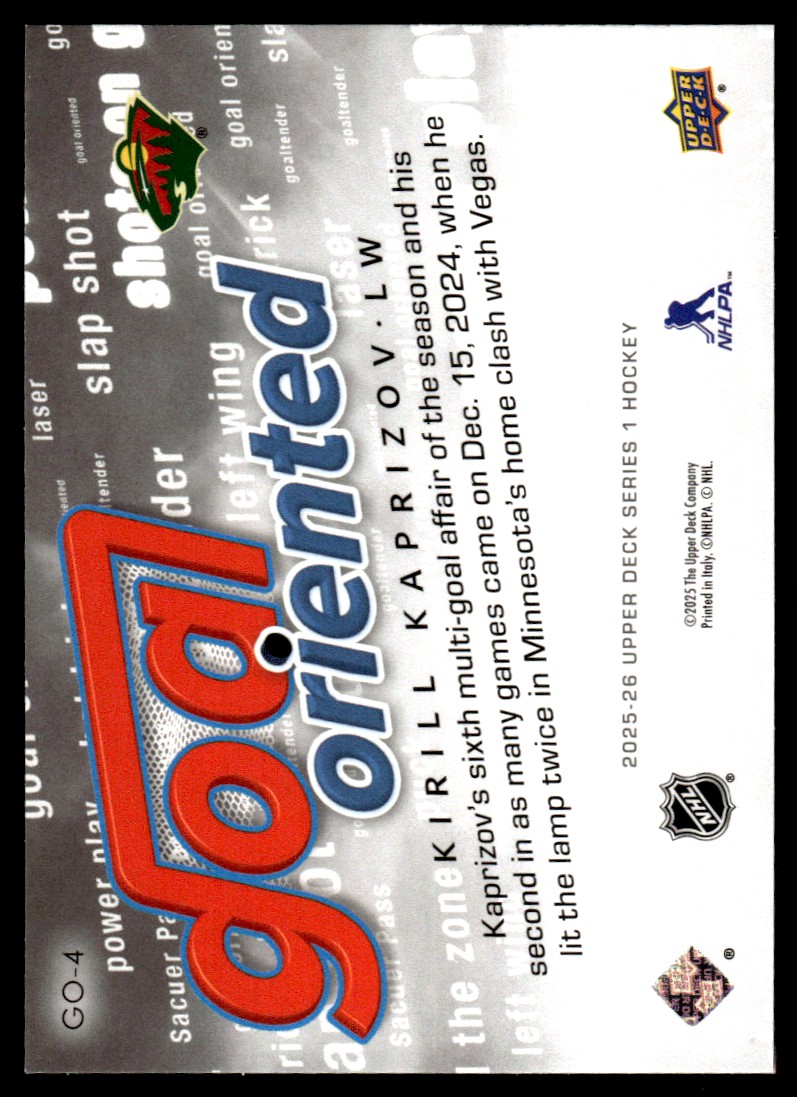 | 2025-26 Upper Deck Goal Oriented Kirill Kaprizov Minnesota Wild #GO-4 |