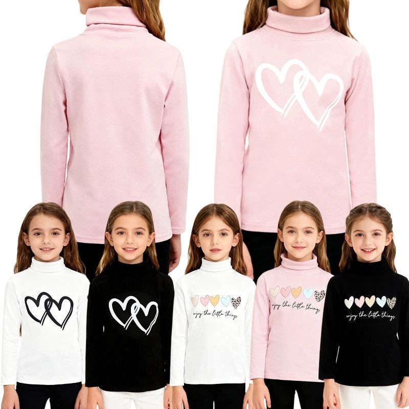 Long sleeve thermal shirt with a heart pattern print, adding a cute and trendy element, making your little girl stand out.