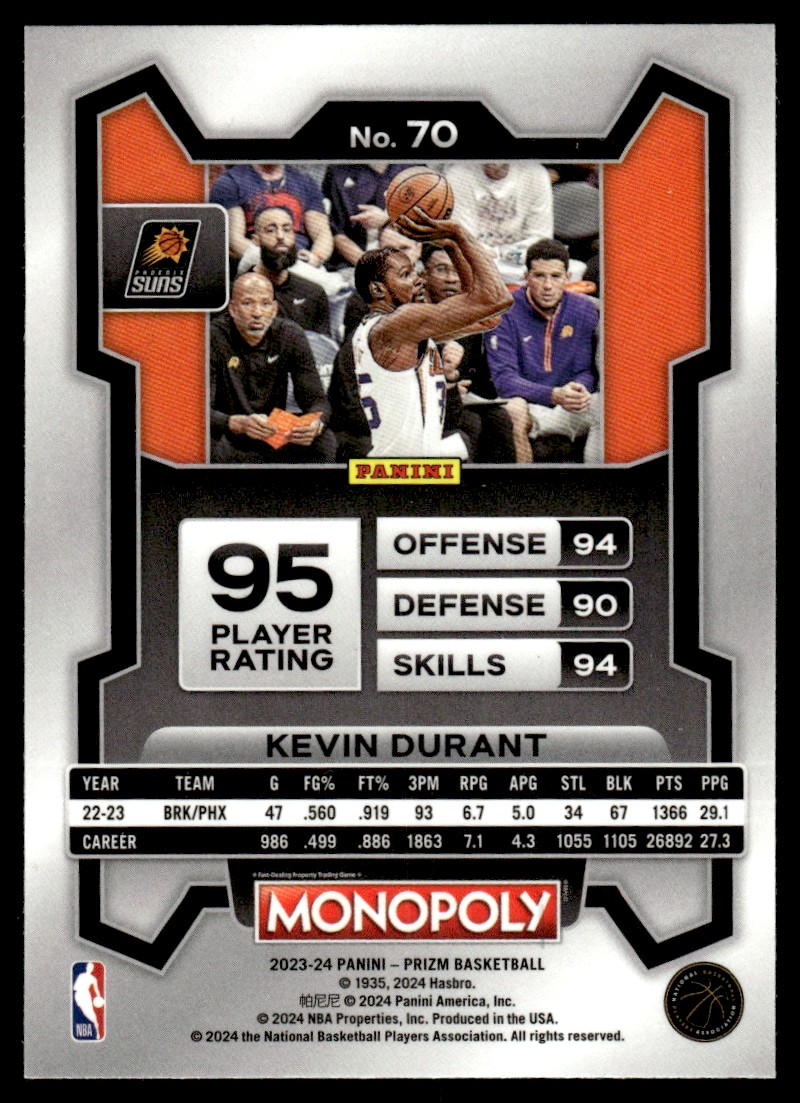 2023-24 Panini Prizm Monopoly Kevin Durant,,..,,., Phoenix Suns #70