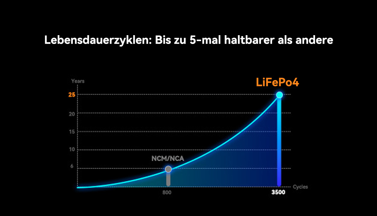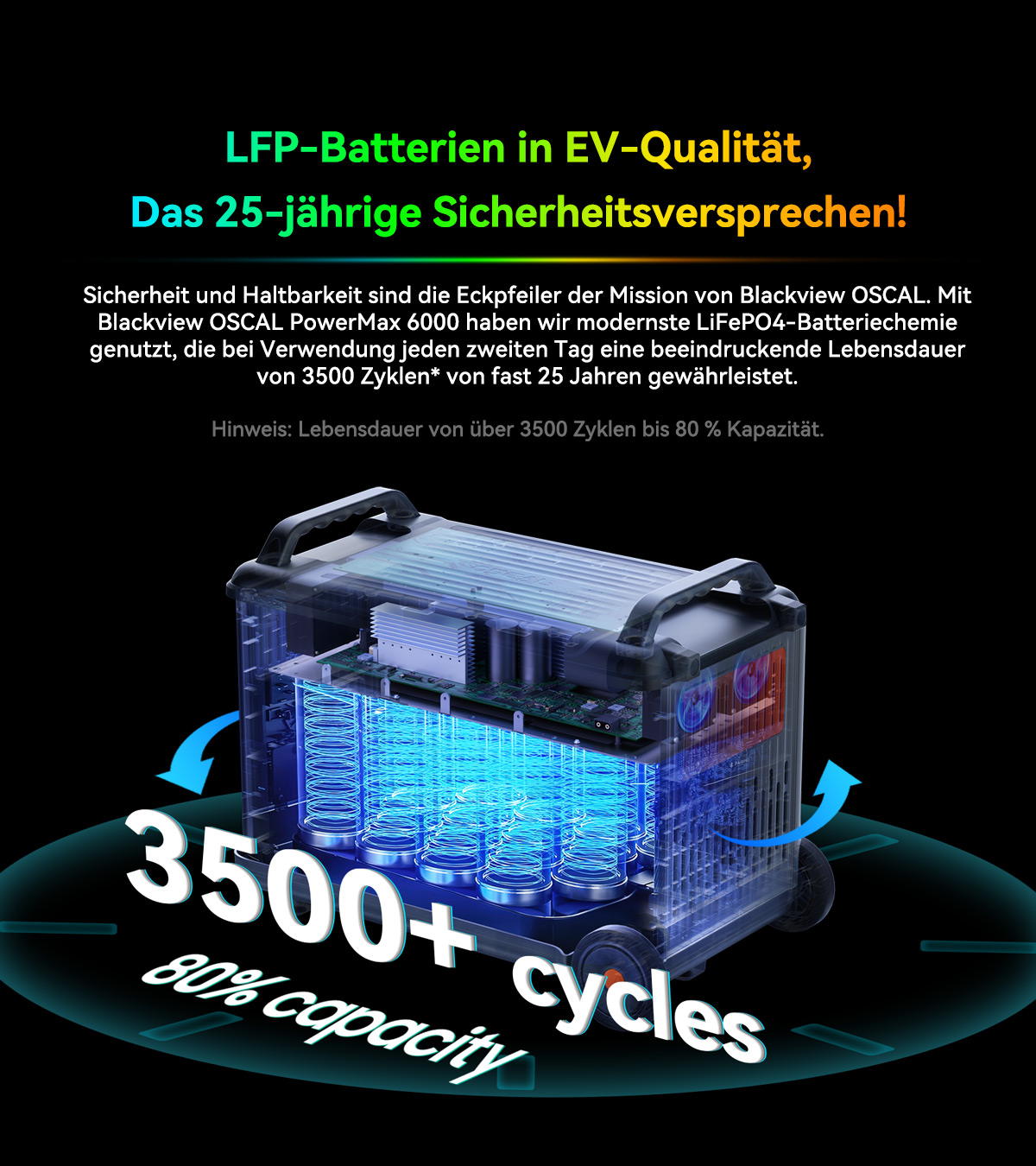Zyklenlebensdauer: 3500 Zyklen bis 80% + Leistung