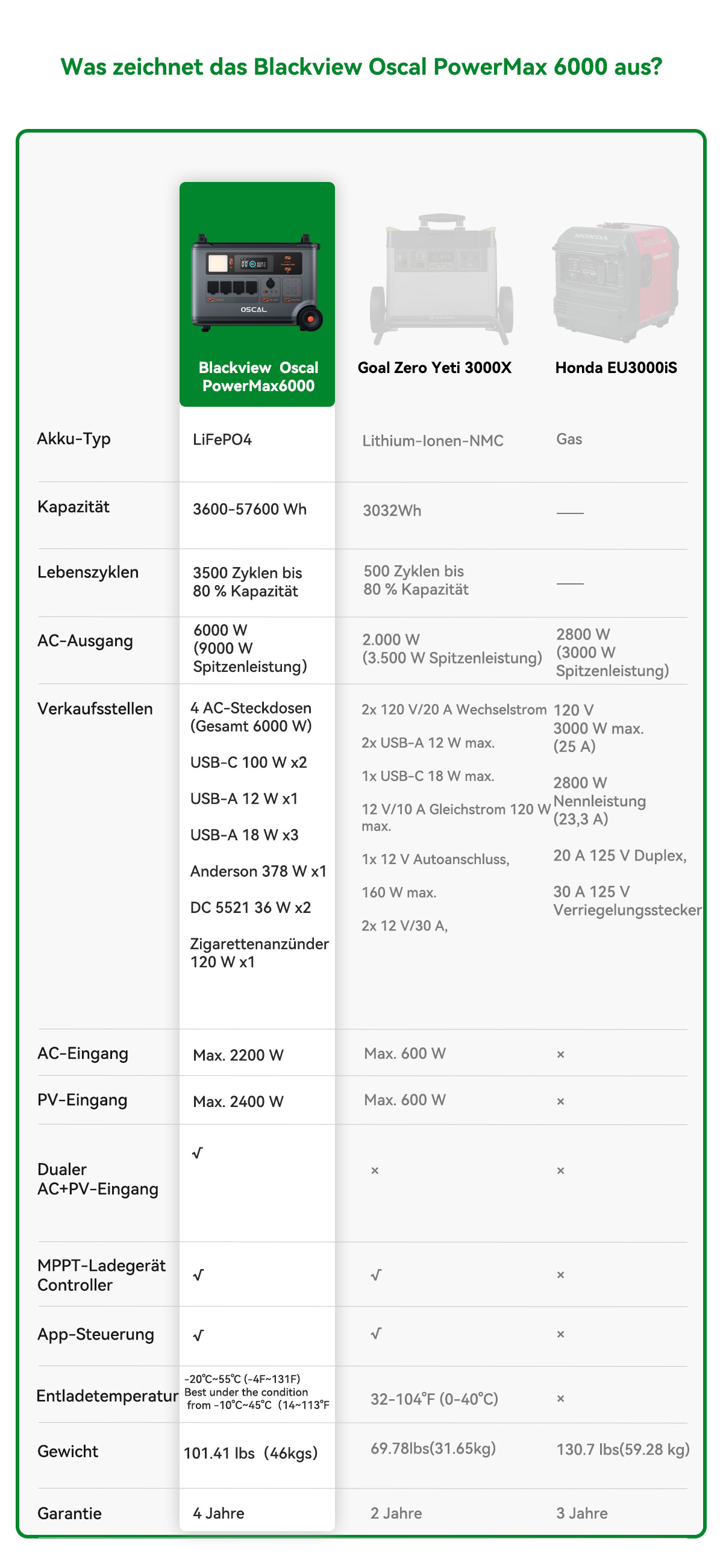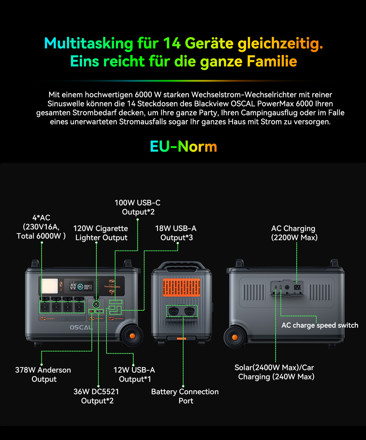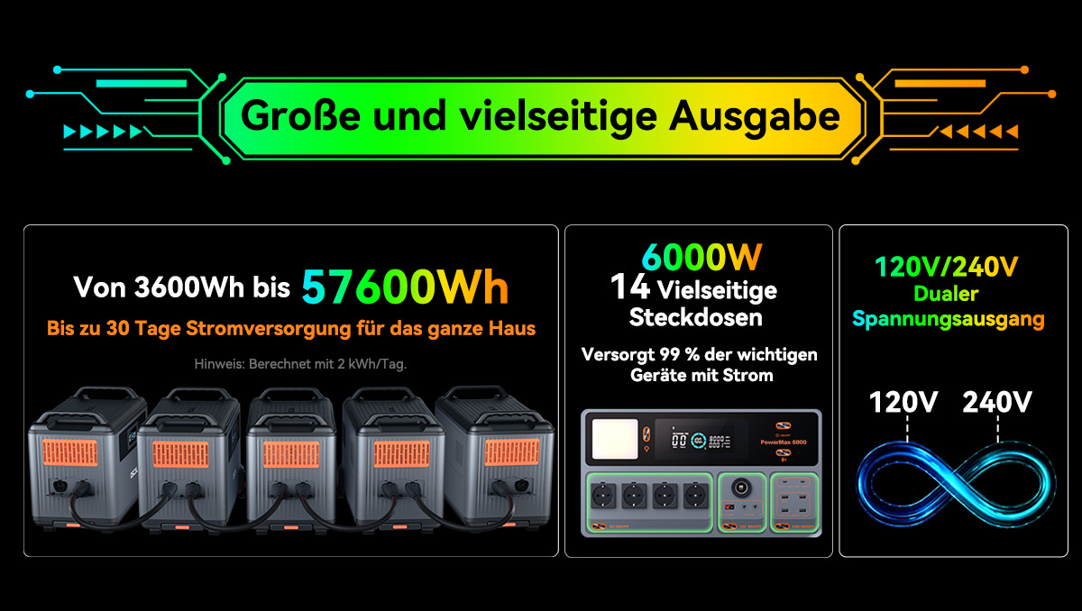 3600Wh hohe Kapazität, 6000W hohe Leistung, 14 Ausgangsanschlüsse