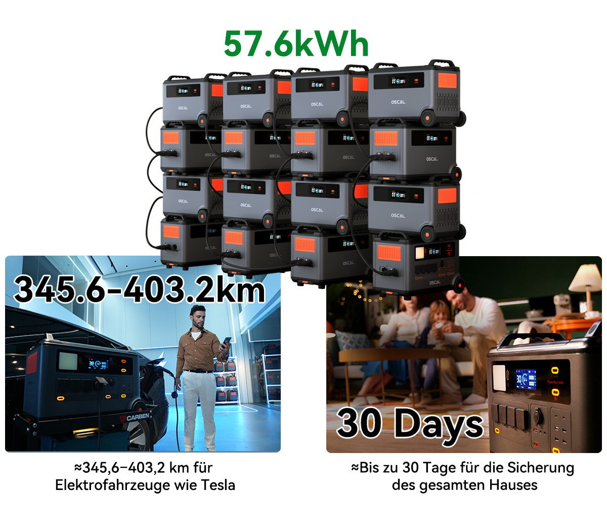 Lithium-Akkuladepaket: Bis zu 15 Einheiten, die Gesamtkapazität beträgt 16*3,6 kWh=57,6 kWh