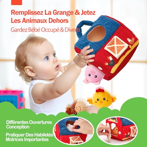 đăUN PARCOURS SENSORIEL ĂTONNANTăDites adieu aux jeux agitĂ©s et bonjour Ă l’engagement captivant ! Ces jouets offrent une expĂ©rience pratique, permettant aux tout-petits d’explorer les textures diverses des animaux de ferme. Les hochets Ă l’intĂ©rieur de chaque animal ajoutent une touche de surprise, accompagnĂ©e de sons de froissement satisfaisants. Le miroir latĂ©ral de la grange devient un portail pour l’auto-dĂ©couverte, favorisant la conscience de soi et suscitant des moments de joie.