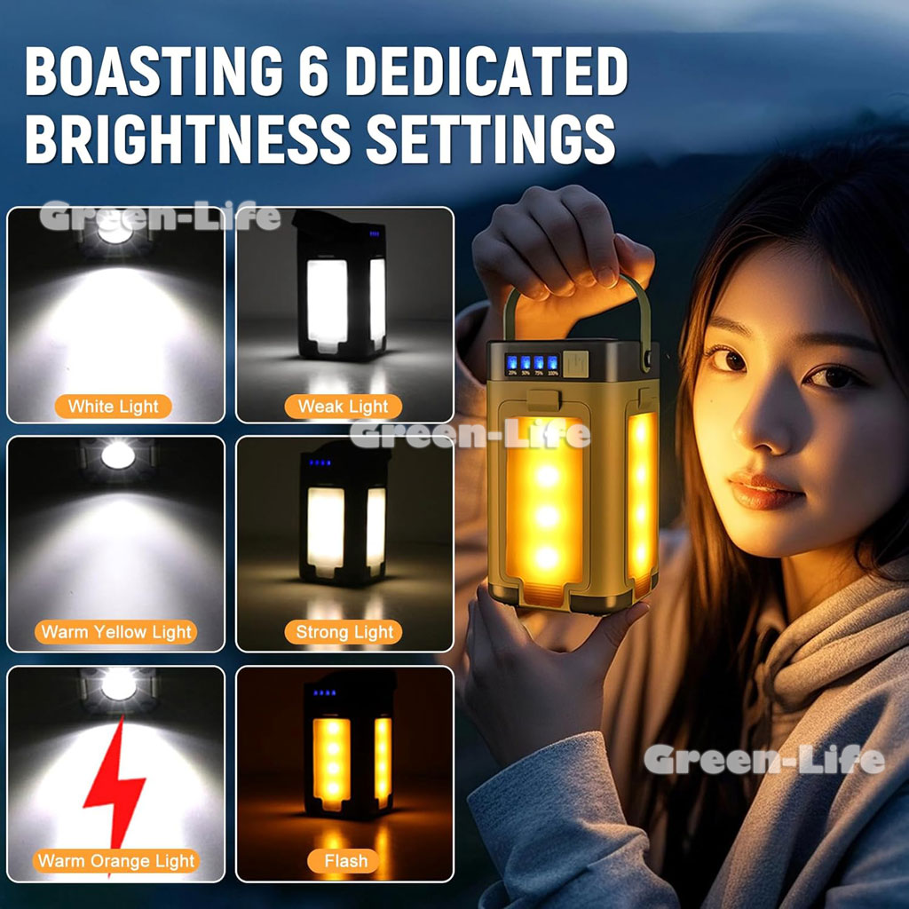 3. Multi-Functional Use: This solar camping lantern doubles as an emergency power source for your phone and serves as a reliable portable flashlight during camping trips.