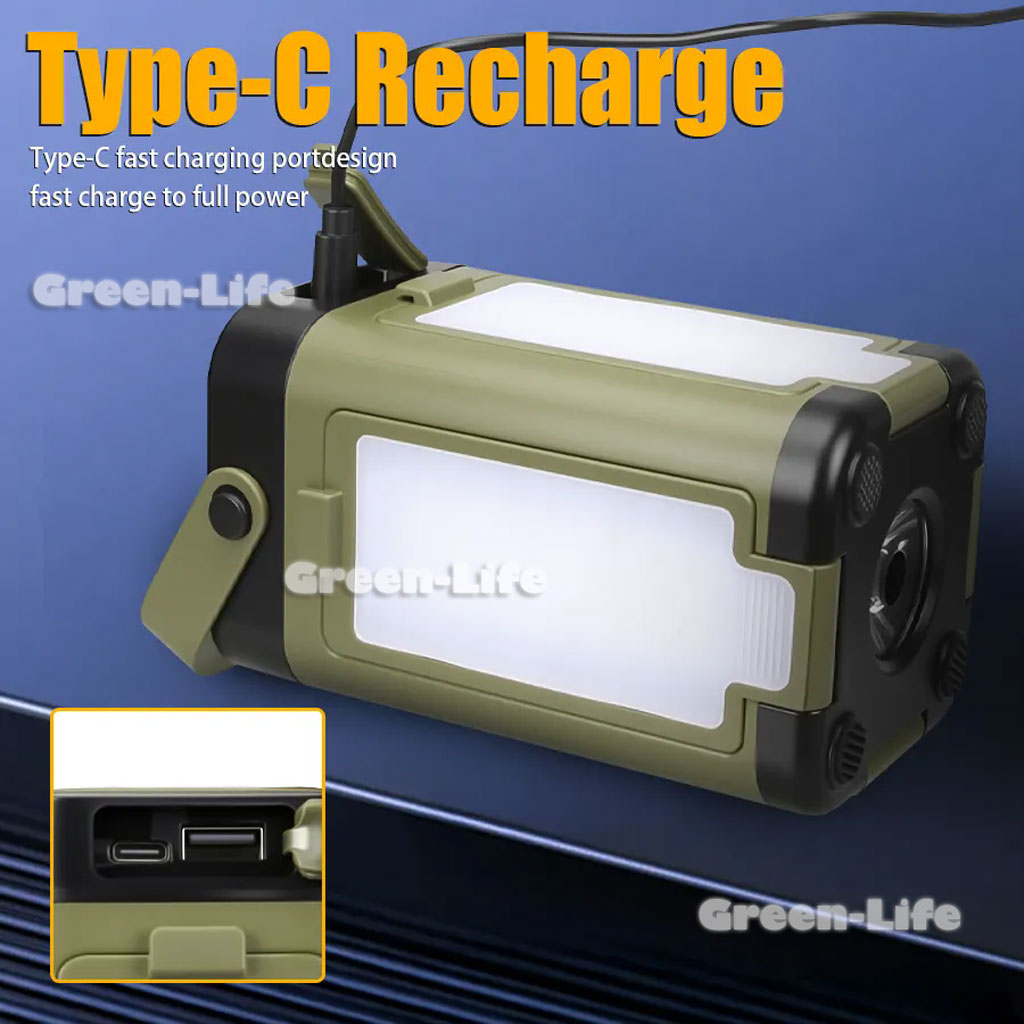 【Dual Charging: Solar & USB-C】Featuring a built-in 2000mAh high-capacity rechargeable battery, this camping lamp delivers up to 5-10 hours of runtime once fully charged. It supports both solar and USB charging—harnessing solar energy for eco-conscious use, or quick USB top-ups when sunlight is limited.
