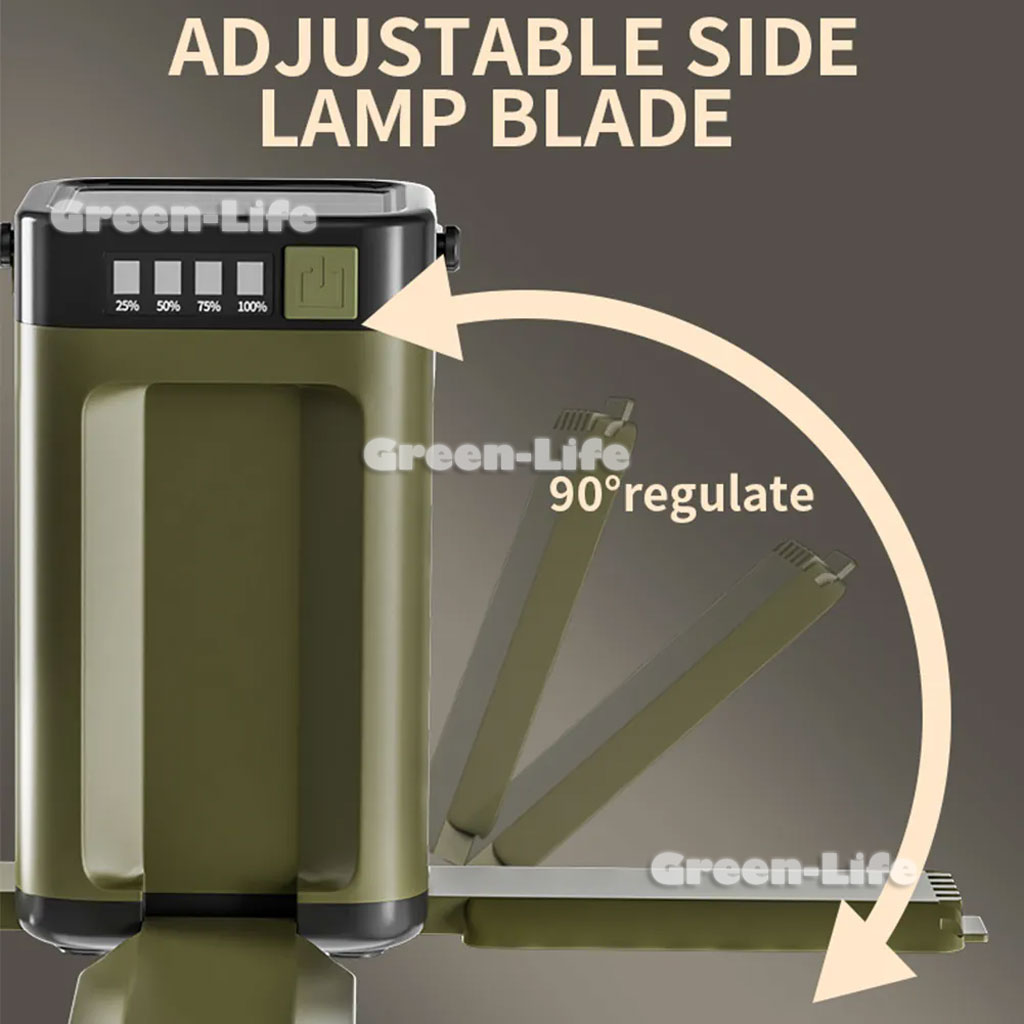 2. 4-Blade Folding Design: The rechargeable lantern features 4 blades that can unfold up to a 90-degree angle, providing ample illumination for your campsite or tent.