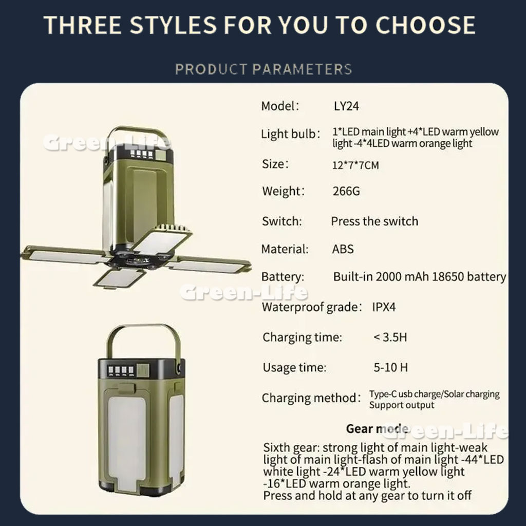 1. Solar-Powered Charging: Our foldable camping light can be recharged using solar energy, making it an eco-friendly choice for outdoor adventures. Keep it powered up even in remote locations.