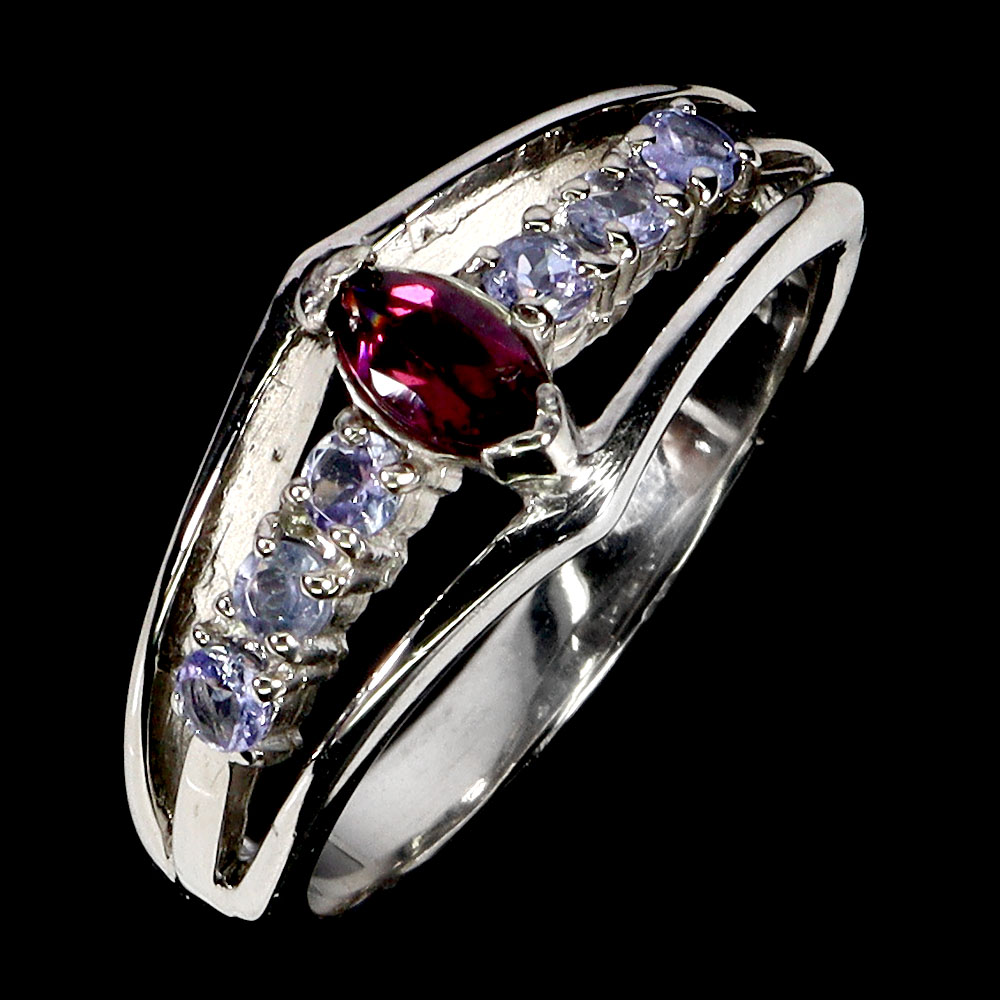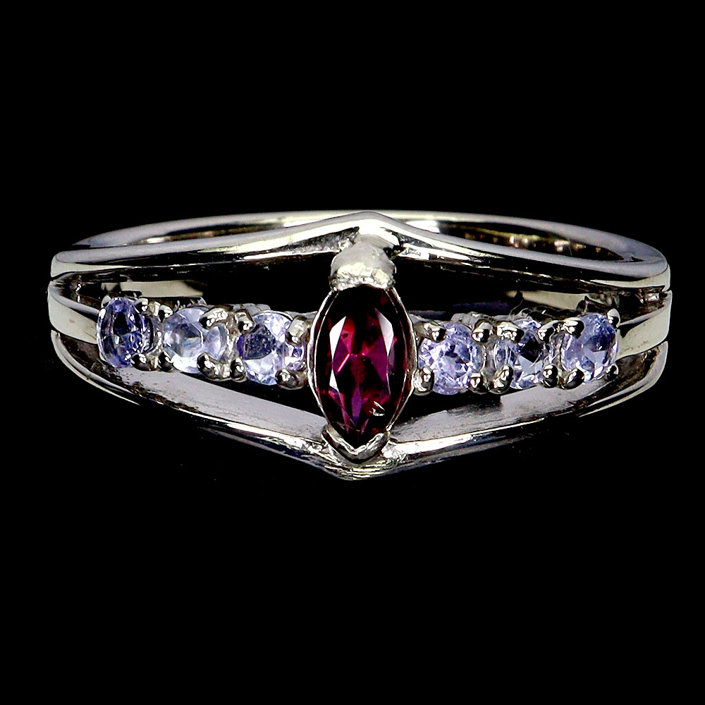 925 Sterling Silver Ring Marquise Rhodolite Garnet Tanzanite Gemstone Jewelry 8