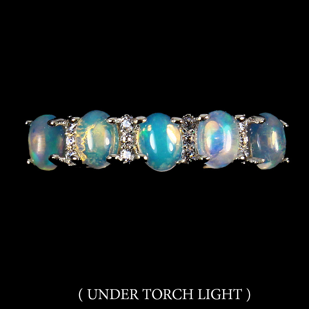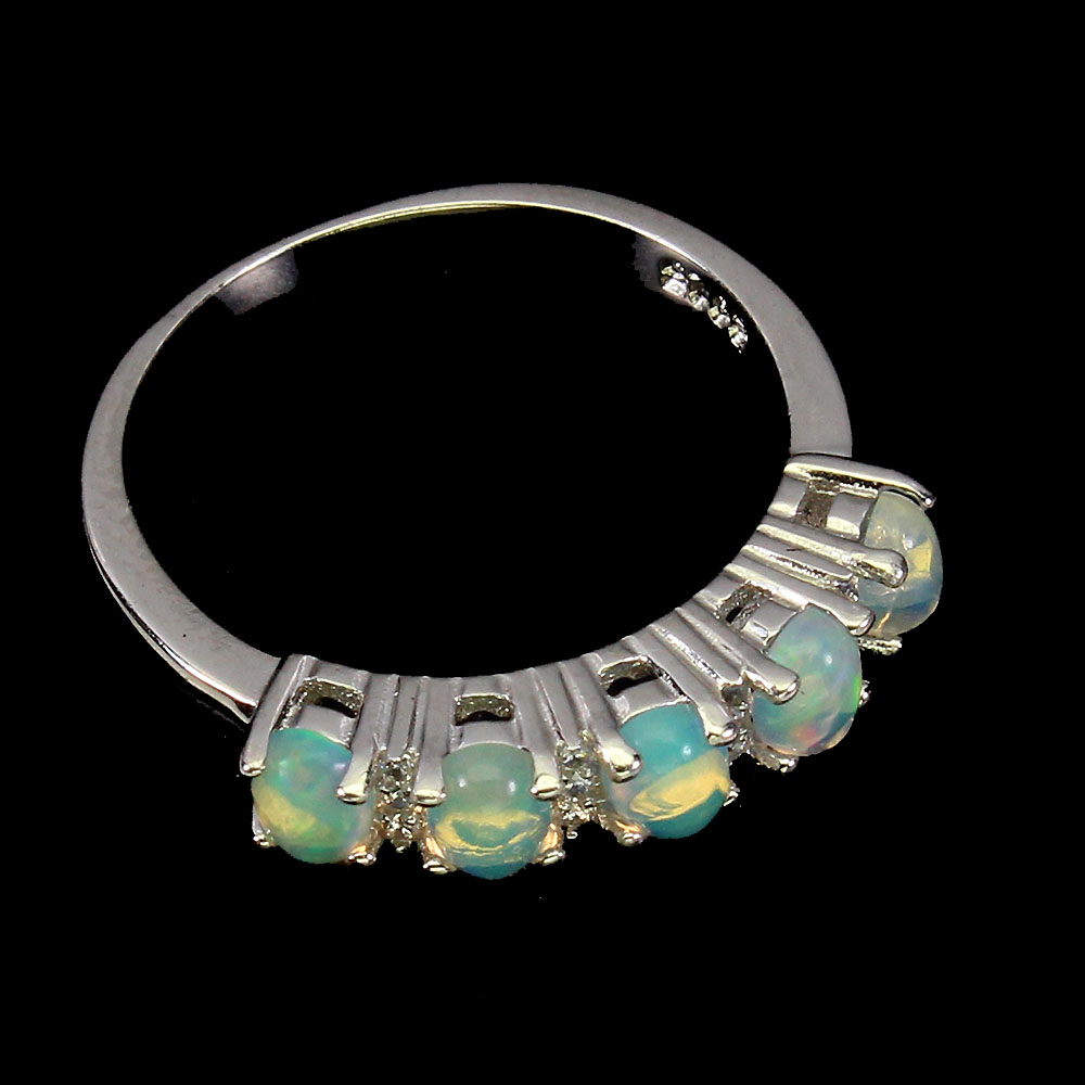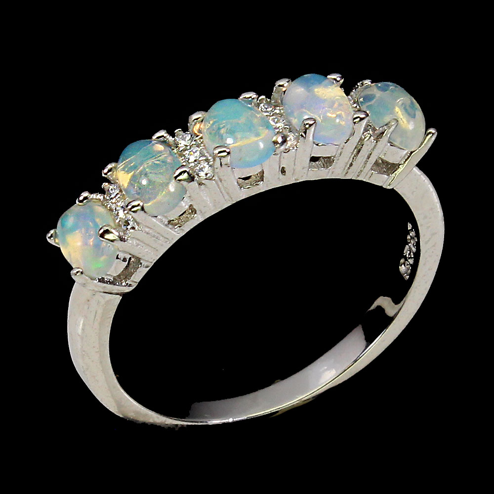 Unheated Oval Fire Opal Rainbow 4x3mm Simulated Cz 925 Sterling Silver Ring 9