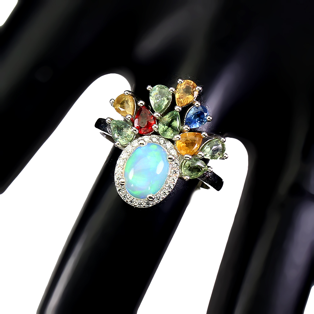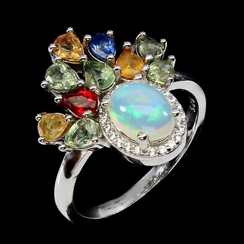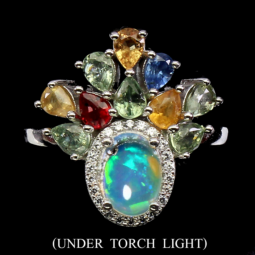 Unheated Oval Fire Opal Rainbow 8x6mm Sapphire Cz 925 Sterling Silver Ring